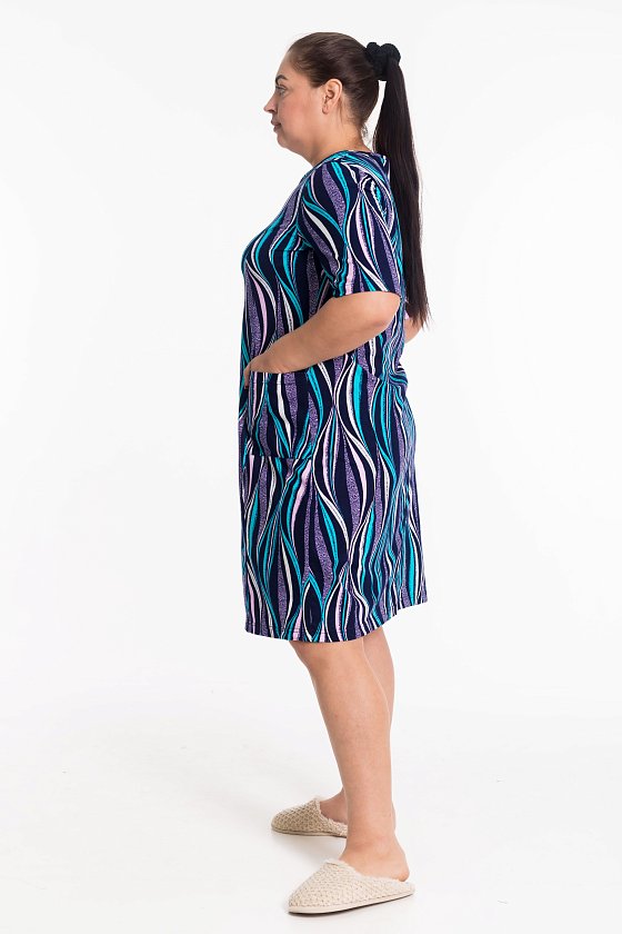 Женский халат — отличный выбор для домашнего отдыха. Он изготовлен из мягкого и комфортного хлопкового полотна с набивным рисунком, что придаёт изделию стильный вид. Халат застёгивается на молнию спереди, что обеспечивает удобство при надевании. Такой халат идеально подойдёт для повседневной носки дома.