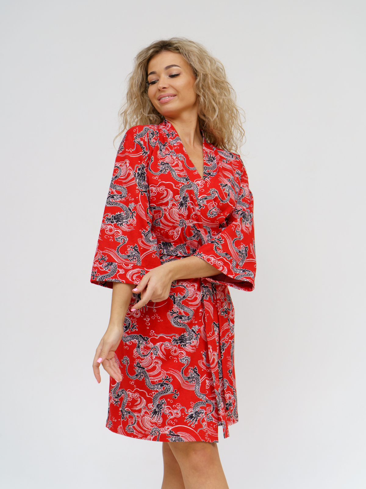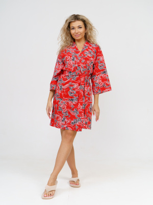 Женский домашний халат на запах из 100% хлопка с вшитым поясом. Ткань приятная к телу, заменит вам любимую пижаму и домашний костюм: достаточно легким движением его накинуть на себя, а изящные внутренние завязки на талии отрегулировать для собственного удобства и комфорта. Женский хлопковый халатик - это настоящая находка, ведь в нем ты будешь в центре внимания даже дома.
