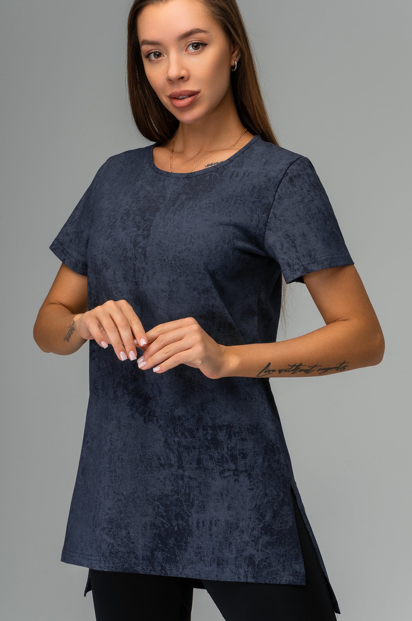 Удобная круглая горловина мягко прилегает к телу. Изящные разрезы по бокам и удлиненная спинка делают футболку идеальной для активных девушек.
