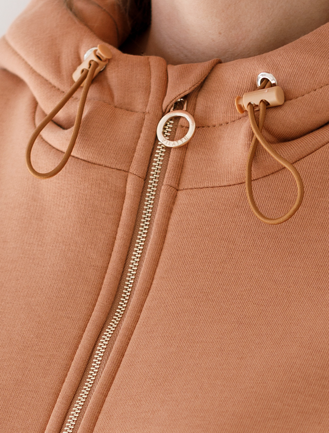 Худи на молнии выполнено из премиального футера трехнитки с теплым начесом. Модель дополнена боковыми карманами и золотистой фурнитурой, что поддерживает актуальный стиль спорт-шик. Свободный крой подходит для любой фигуры. Ранней осенью или поздней весной можно носить в качестве верхней одежды. Сочетается в костюме с брюками D44.129 охра