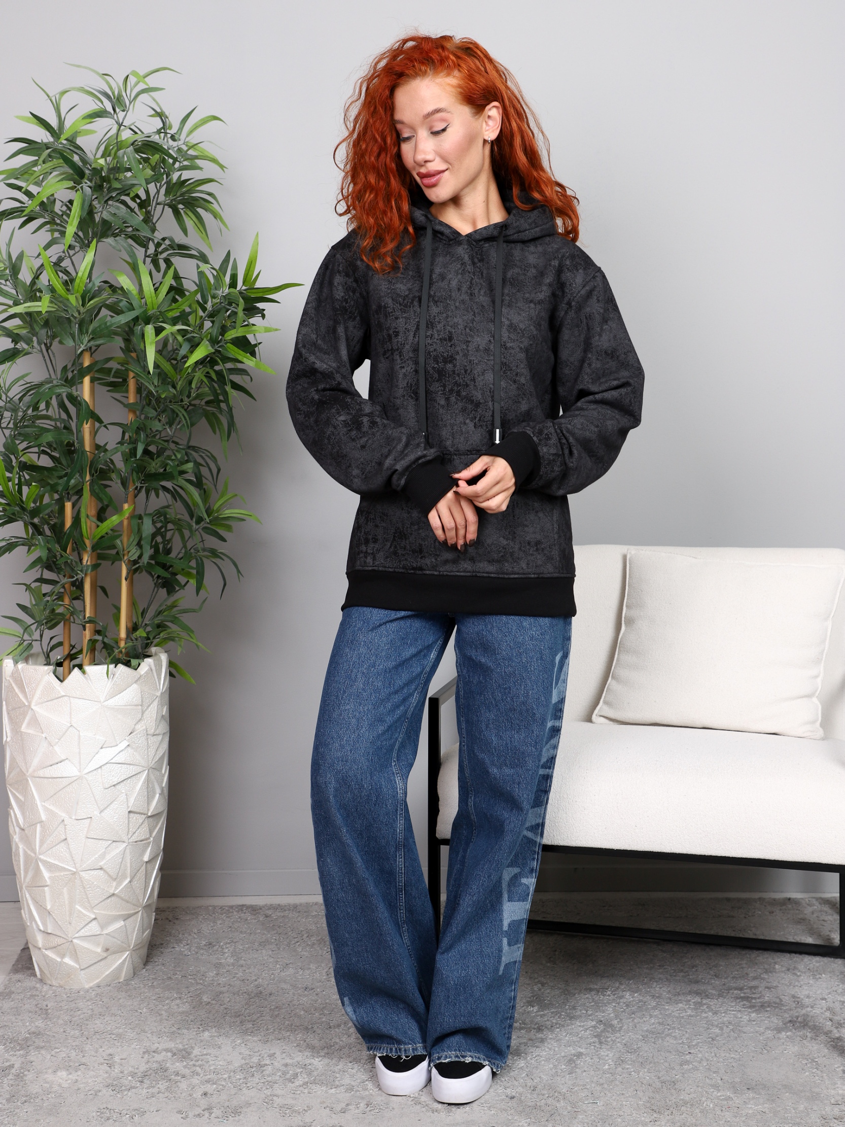 Худи оверсайз из футера 3х-нитка начёс Варенка Черный (М-966)