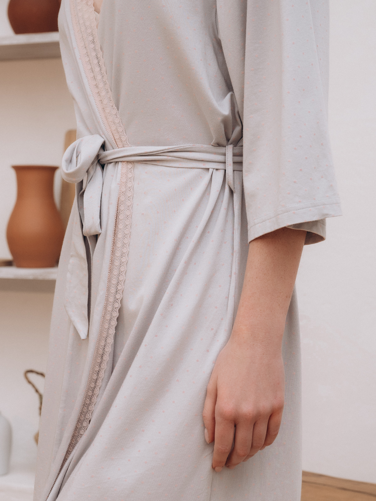 Нежный лёгкий халат от торговой марки Индефини придаст чувство лёгкости вашим домашним делам.