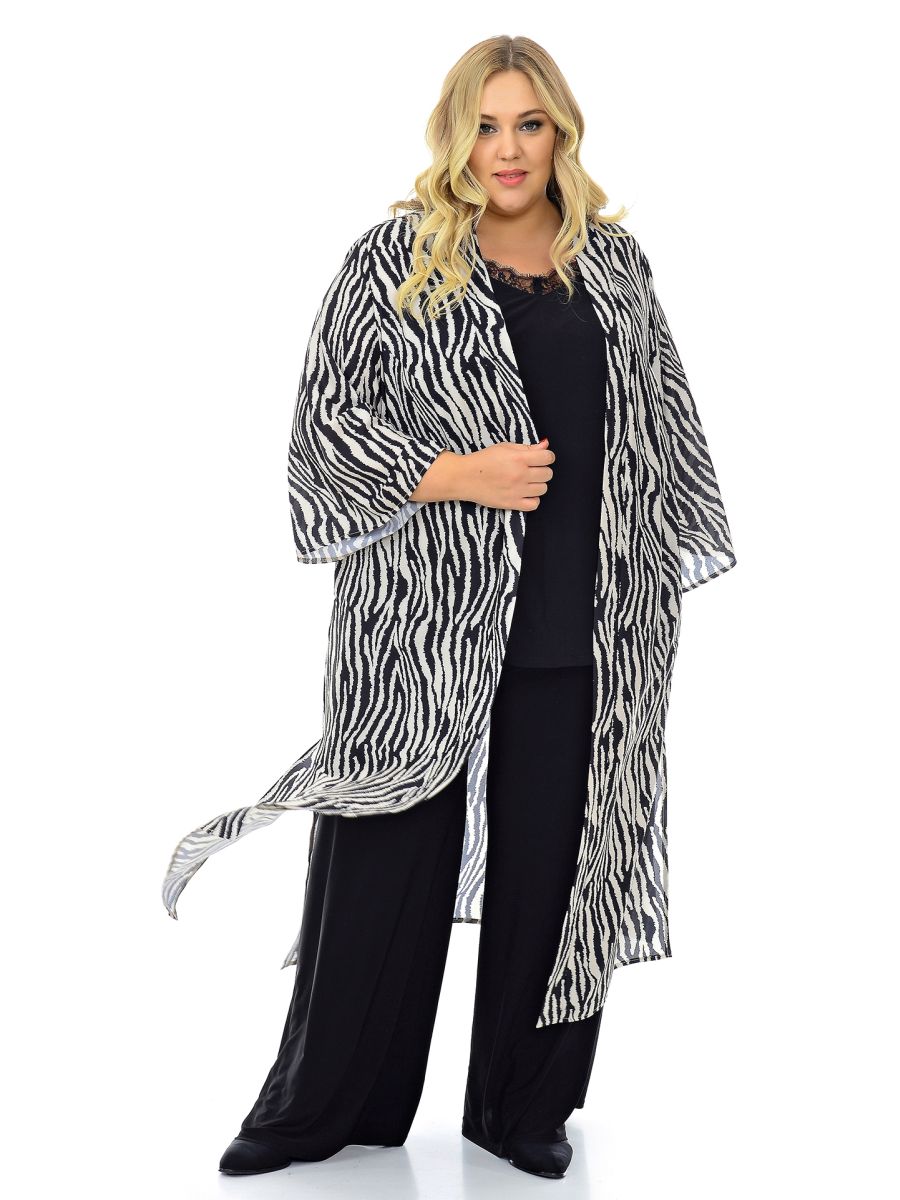 Кардиган длинный из струящейся плательно-блузочной ткани. По низу боковых швов разрезы. Рукав расклешенный. Эта модель уникальна, она способна дополнить легкостью и изяществом любой образ: будь то маленькое черное платье, струящиеся брюки с топом или комплект романтичного белья.