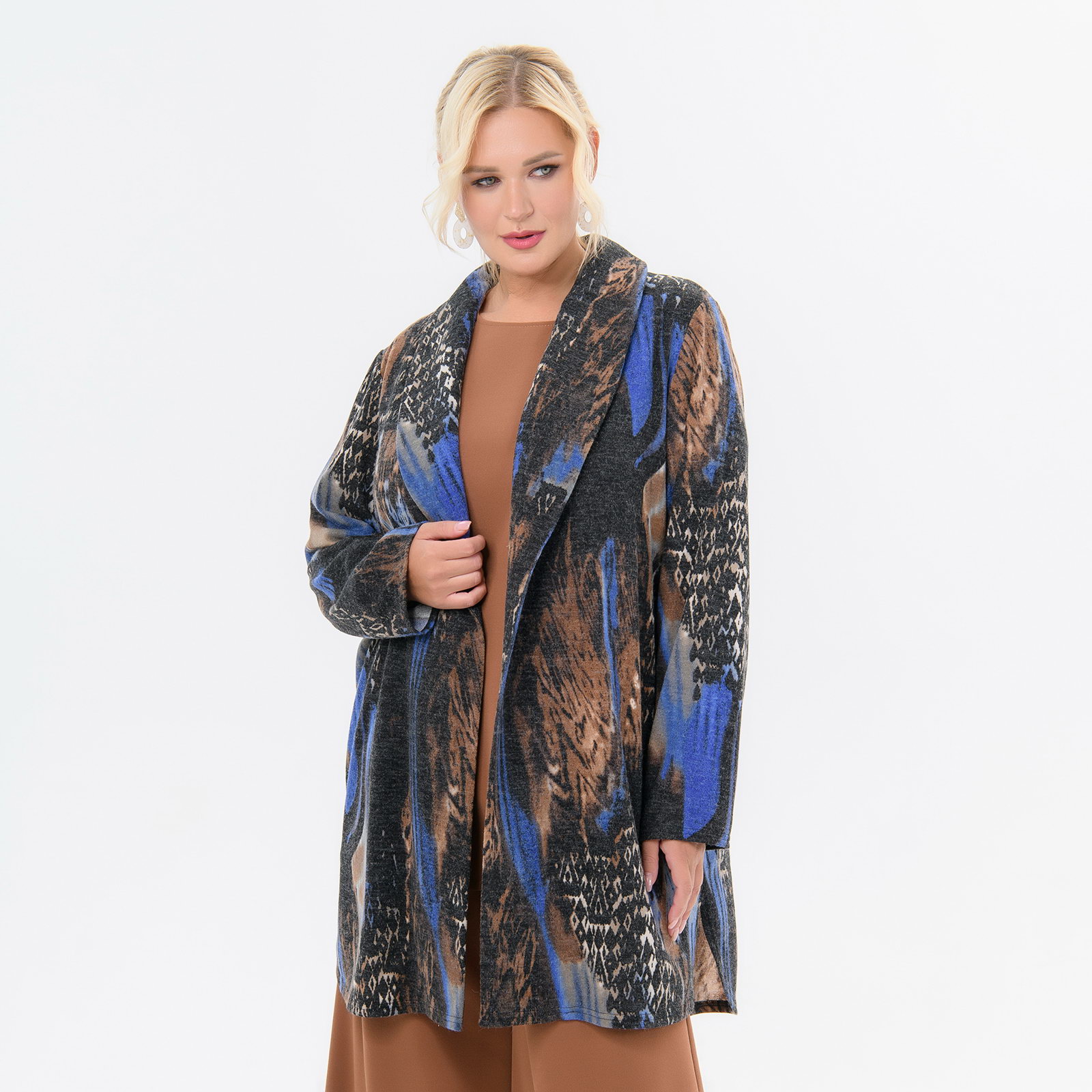 Кардиган из джерси - ангора, принт "фантазия", с воротником "шаль"