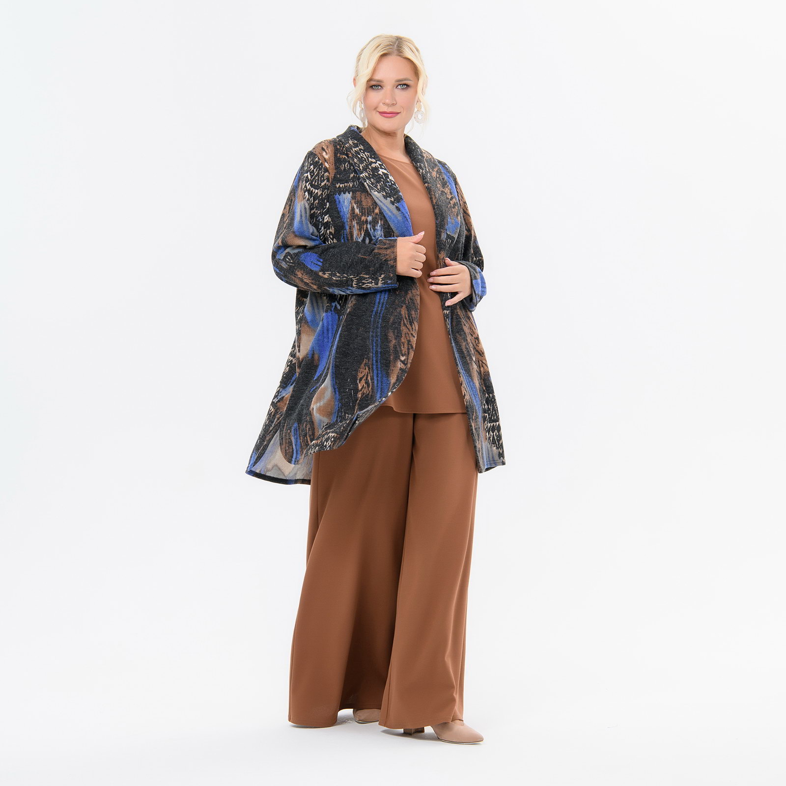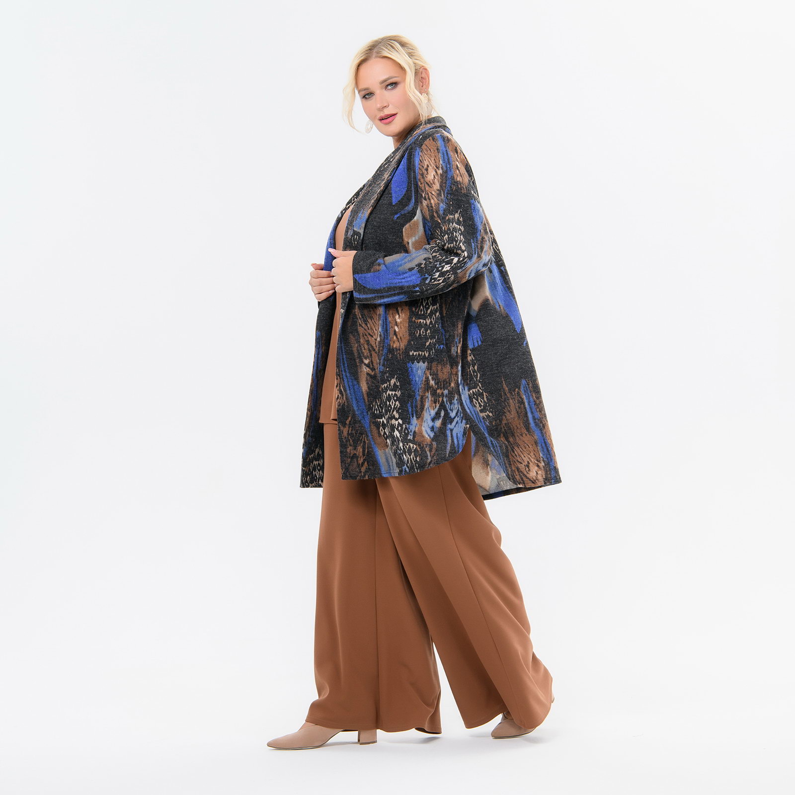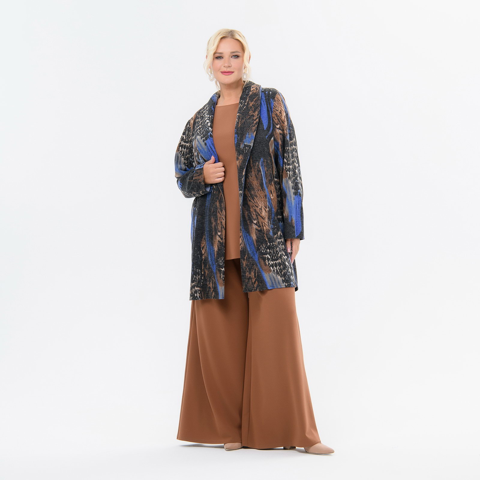 Кардиган - "летнее" пальто выполнен из джерси, имитирующего ангору.