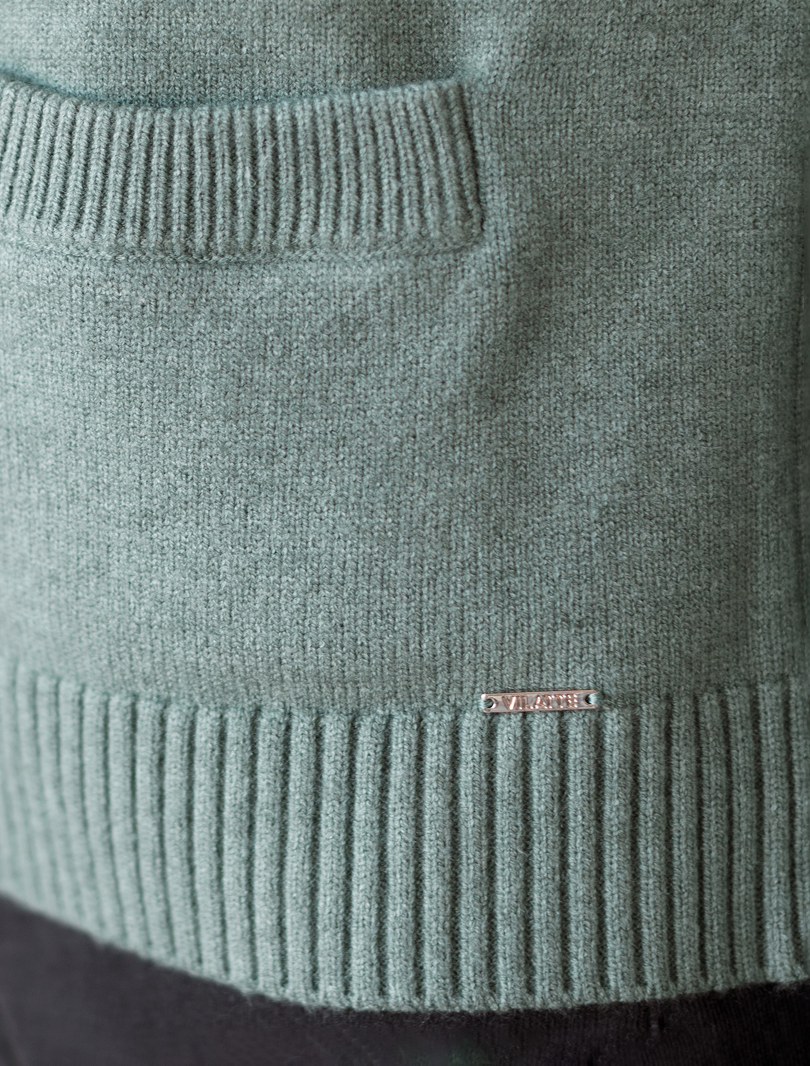 Кардиган выполнен из мягкой меланжевой пряжи с добавлением кашемира. Модель прямого силуэта гармонично впишется в любой образ с брюками, юбками и джинсами. Застежка на пуговицы в жемчужно-золотистом оттенке. Изделие очень приятное к телу, совершенно не колется и отлично сохраняет тепло. Сочетается в костюме с брюками D38.013, D38.012 и юбкой D36.016 светло-оливковый меланж