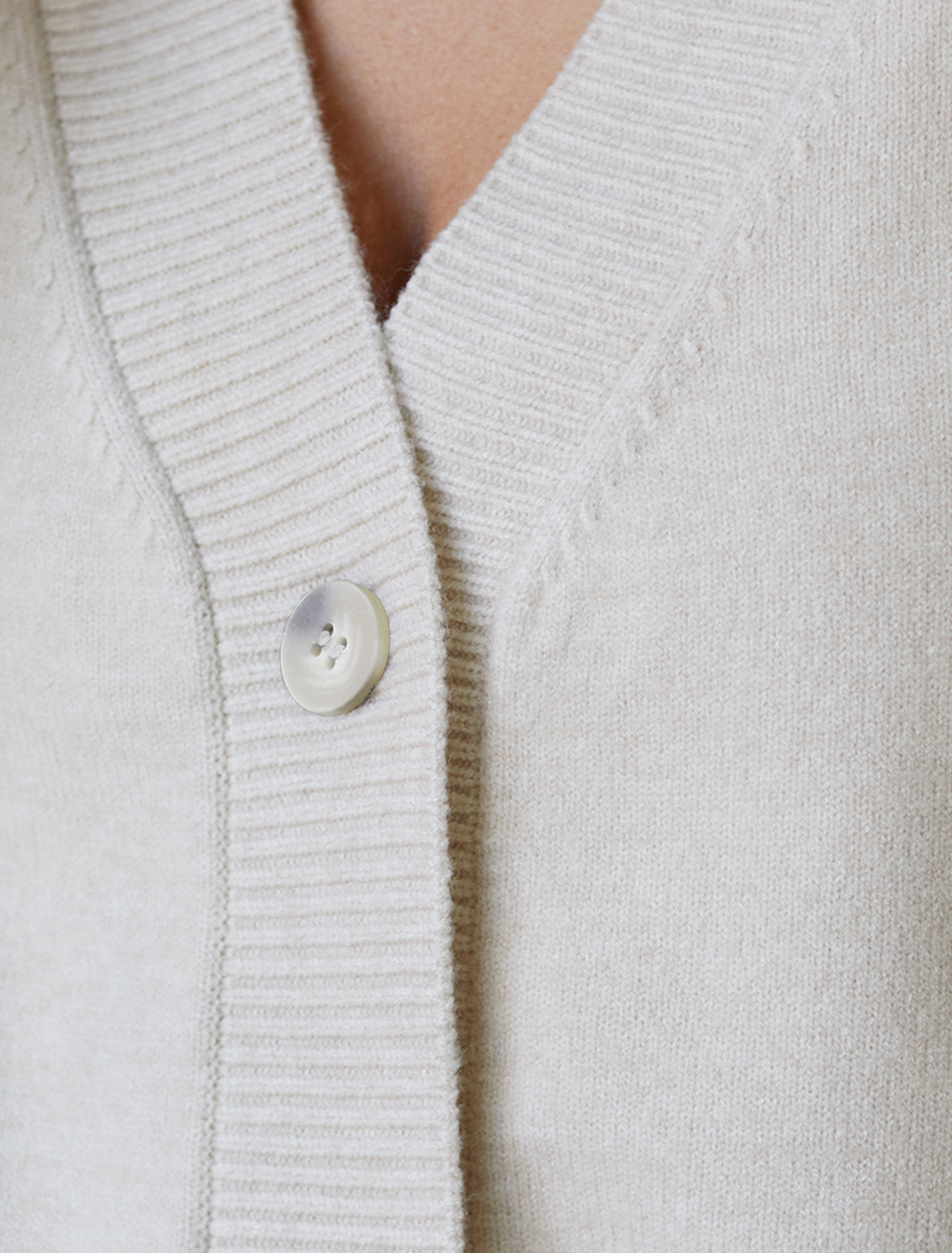Удлиненный кардиган выполнен из мягкой меланжевой пряжи с добавлением кашемира. Классическая модель с глубоким вырезом прямого силуэта идеально сочетается как с брюками, юбками, джинсами, так и с платьями. Застежка на пуговицы. Изделие очень приятное к телу, совершенно не колется и отлично сохраняет тепло. Сочетается в костюме с брюками D38.013, D38.012 и юбкой D36.016 овсяный меланж