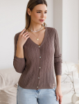Кардиган выполнен из мягкой меланжевой пряжи с Романтичности прямому силуэту добавляют мягкие воланы по линии пуговиц, на манжетах и краю изделия. Застежка на пуговицы из натурального перламутра. Изделие очень приятное к телу, совершенно не колется и отлично сохраняет тепло. Сочетается в костюме с брюками D38.013, D38.012 и юбкой D36.016