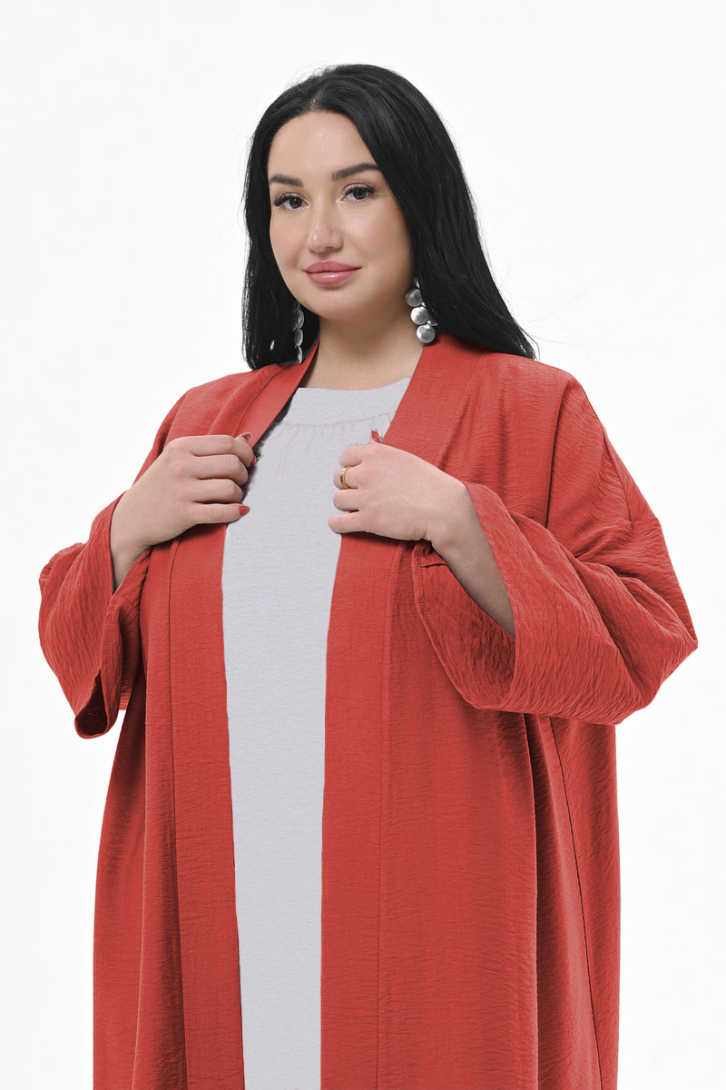 Стильный, длинный кардиган прямого силуэта из плотной, фактурной вискозы. Рукав "кимоно" длинный.