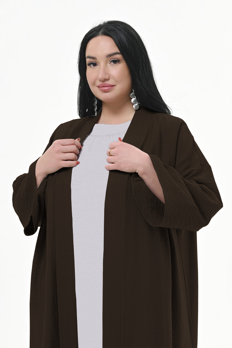 Стильный, длинный кардиган прямого силуэта из плотной, фактурной вискозы. Рукав "кимоно" длинный.