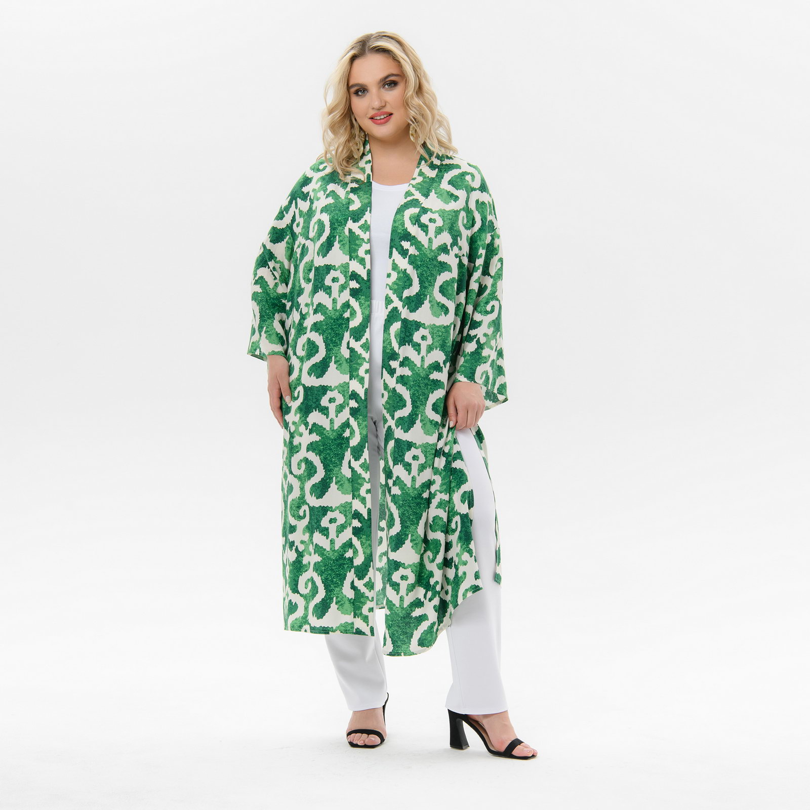 Кардиган - кимоно из вискозы, принт "зеленая абстракция"