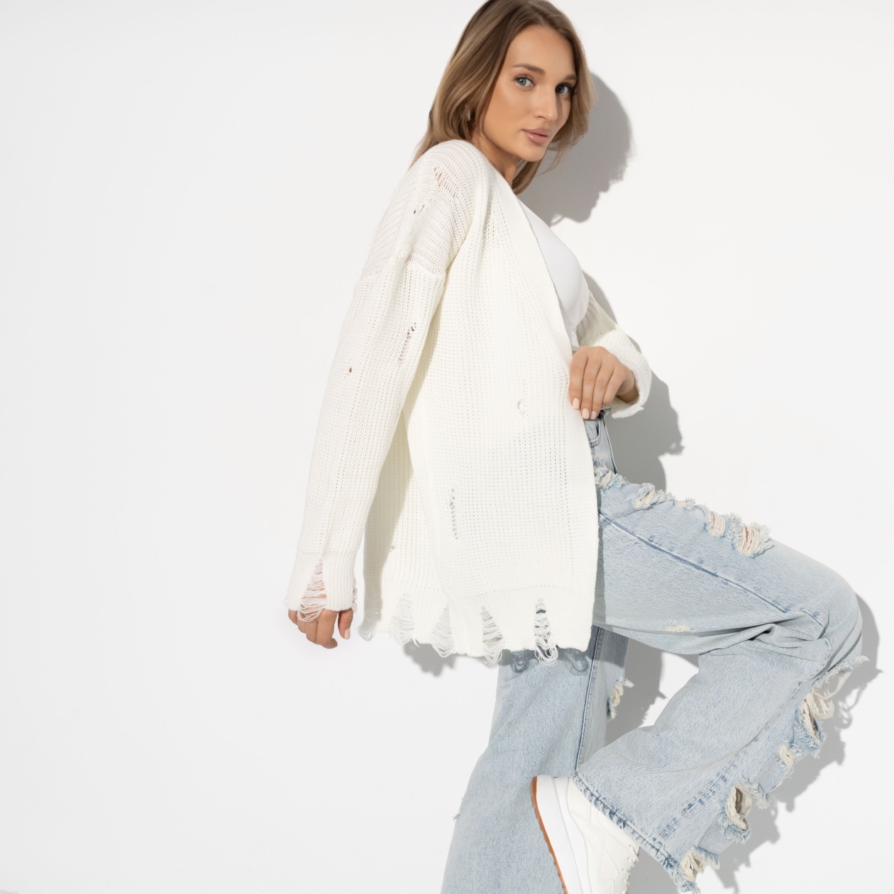 Окунитесь в мир изысканного комфорта и стиля с нашим кардиганом от личного бренда. Вдохновленный духом гранжа из 80-х, он воплощает в себе смелость и утонченность современности. Вязаное полотно придаёт этому кардигану исключительную мягкость и уют, а уникальный дизайн с элементами гранжа добавляет нотку дерзости и свободы. Покупка оптом позволит вам не только сэкономить, но и предложить своим клиентам актуальный тренд, который останется популярным на протяжении многих сезонов. Станьте частью модной революции и подарите своим покупателям возможность выразить индивидуальность с помощью наших кардиганов.