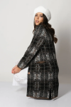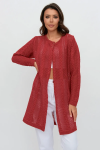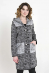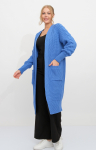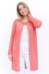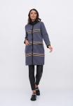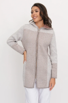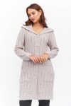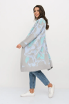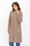 Женский кардиган прямого силуэта длинной до колен с отложным воротником застегивающийся на потайные кнопки с одной декоративной крупной пуговицей.  Вязанный кардиган с длинным рукавом, плечо спущенное .По низу рукава имеется отворачивающийся манжет. По бокам изделия симметрично расположены прорезные карманы. Изделие выполнено жаккардовым рисунком. Подходит для использования в демисезонный период. серый