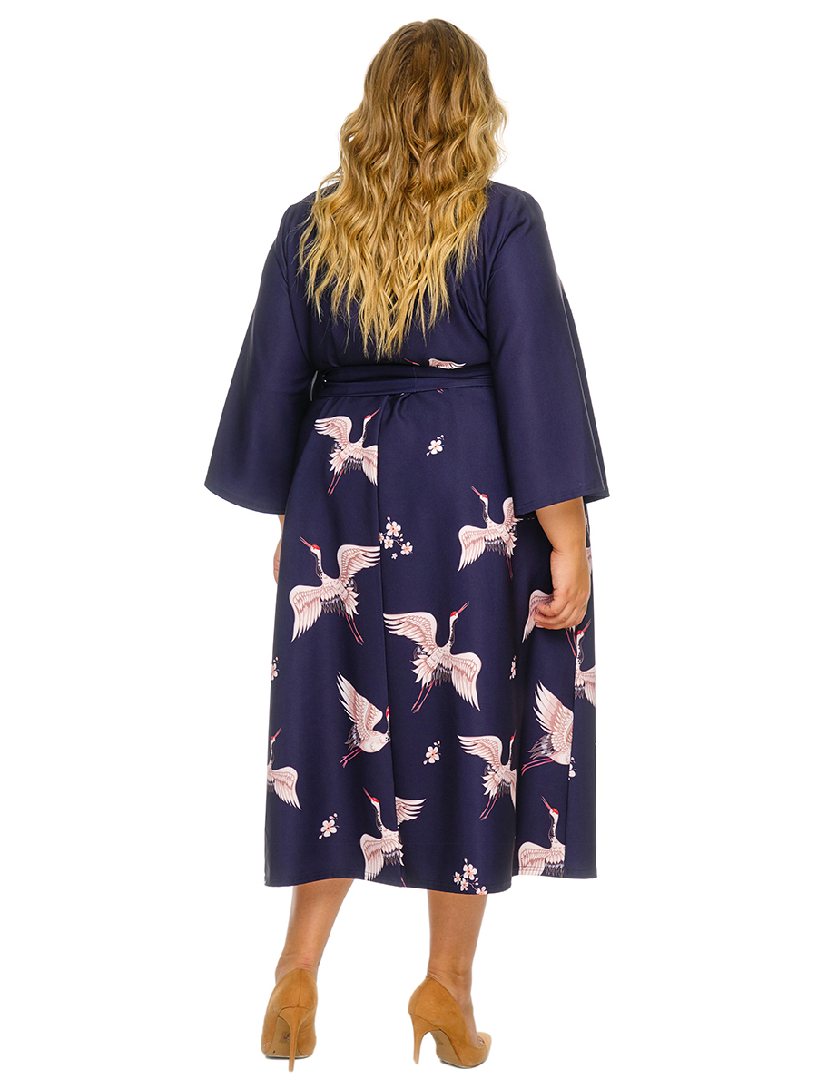 Кардиган свободный, с карманами, принт "журавли" *