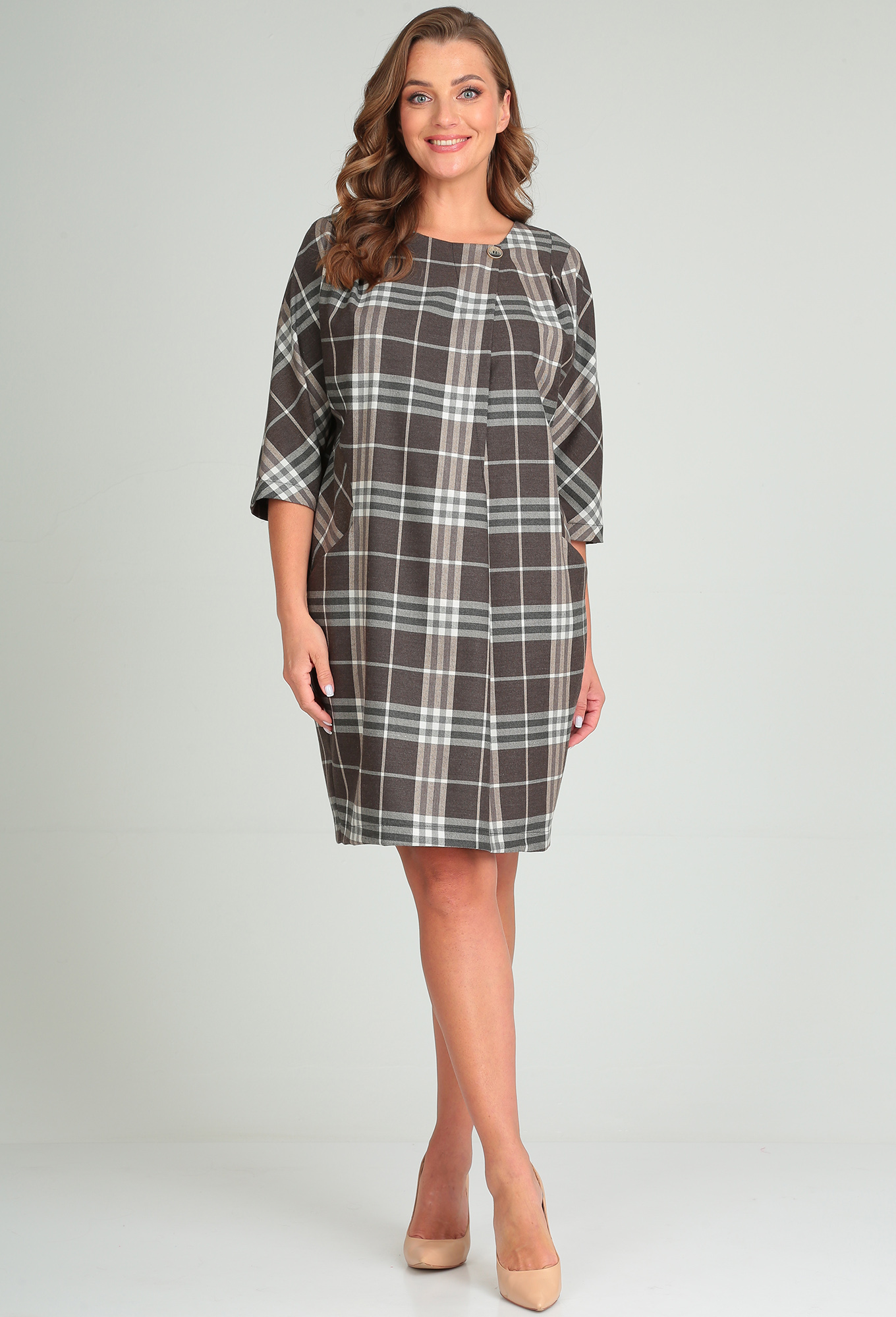 Платье женское свободного силуэта. По полочке декоративная складка выходящая из горловины, верх складки закреплен пуговицей. В боковом шве функциональные карманы. Рукав "летучая мышь", длина 3\4.