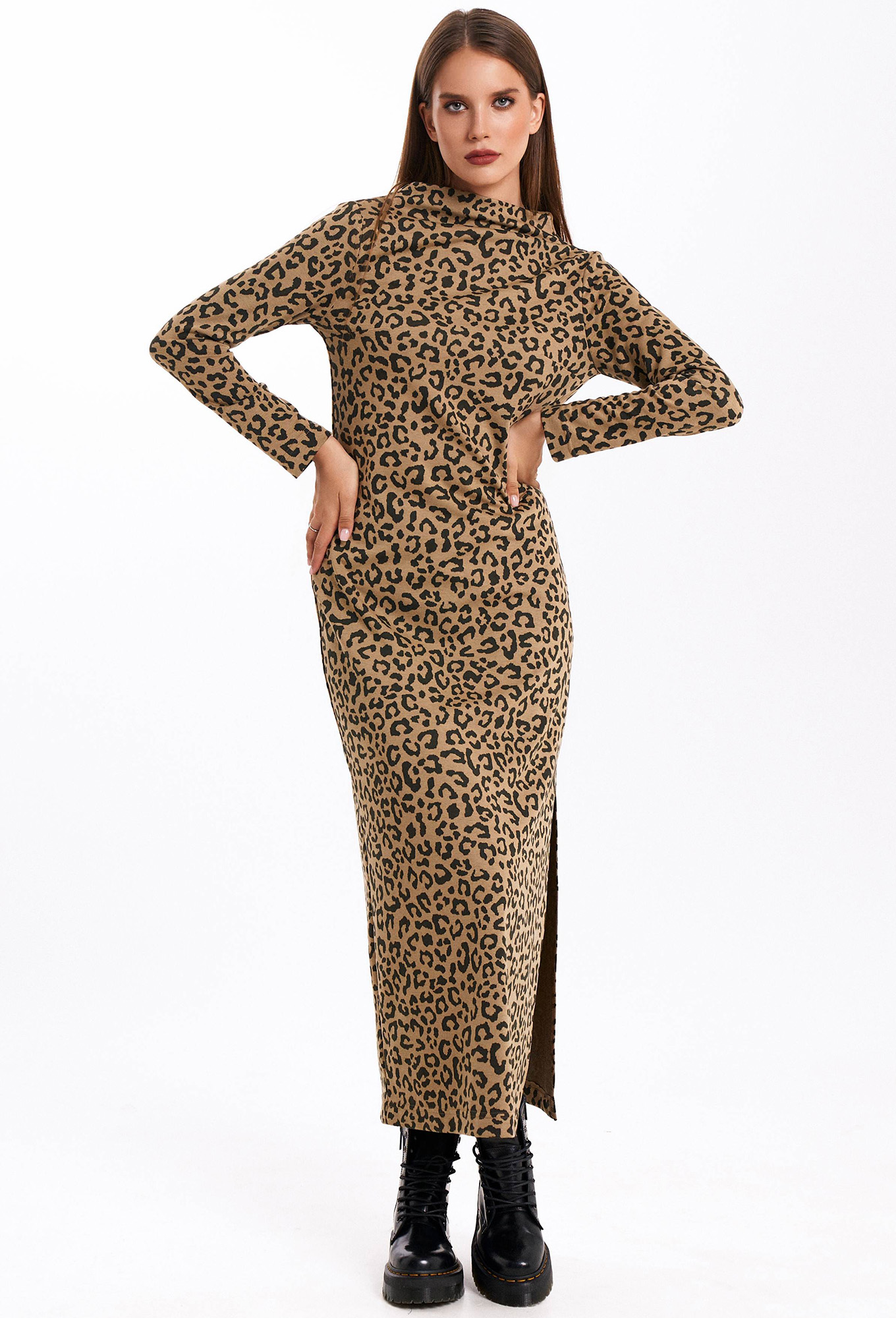 Платье KaVari 1057 бежевый леопард