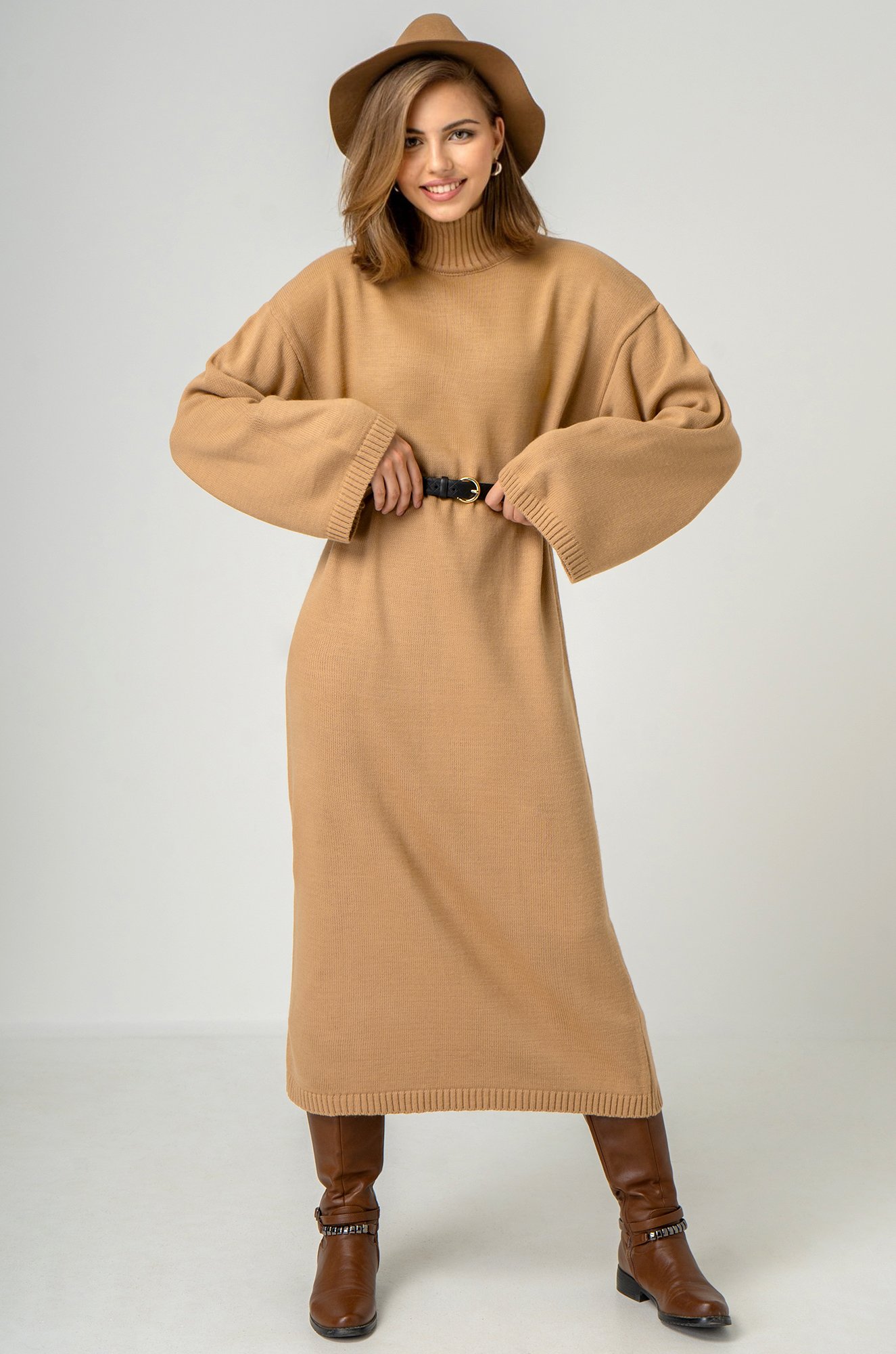 Женское бежевое платье выполнено из вязаного трикотажа с добавлением шерсти. Шерсть отличается естественным теплом и невероятной мягкостью.