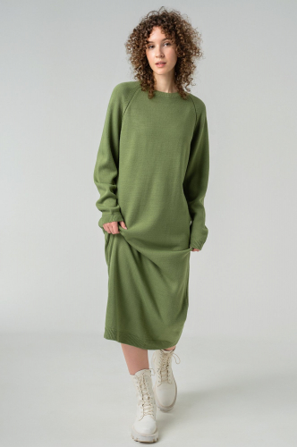Мягкая пряжа с хлопком и акрилом в составе приятно ощущается на теле и бережно согревает. Однотонное платье с горлом идеально на каждый день. Теплое платье для женщин — прекрасный вариант на осень и зиму.