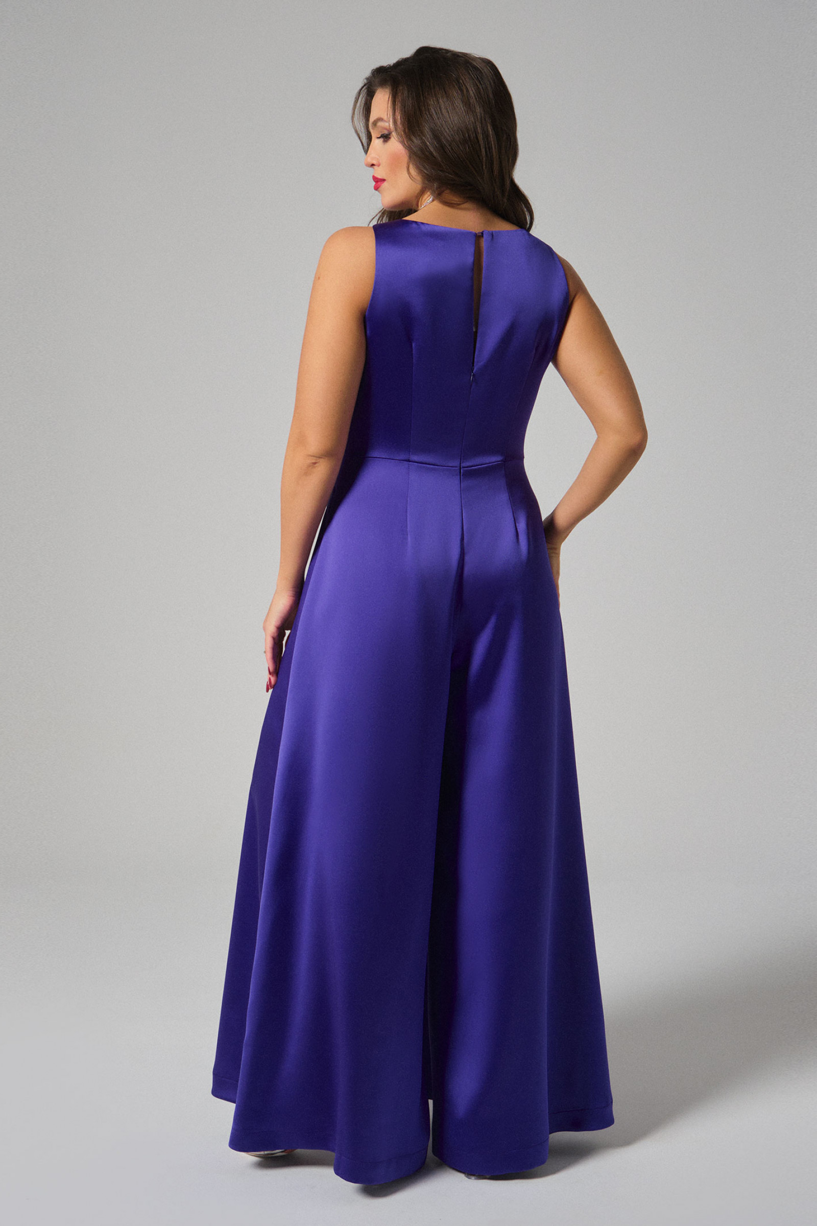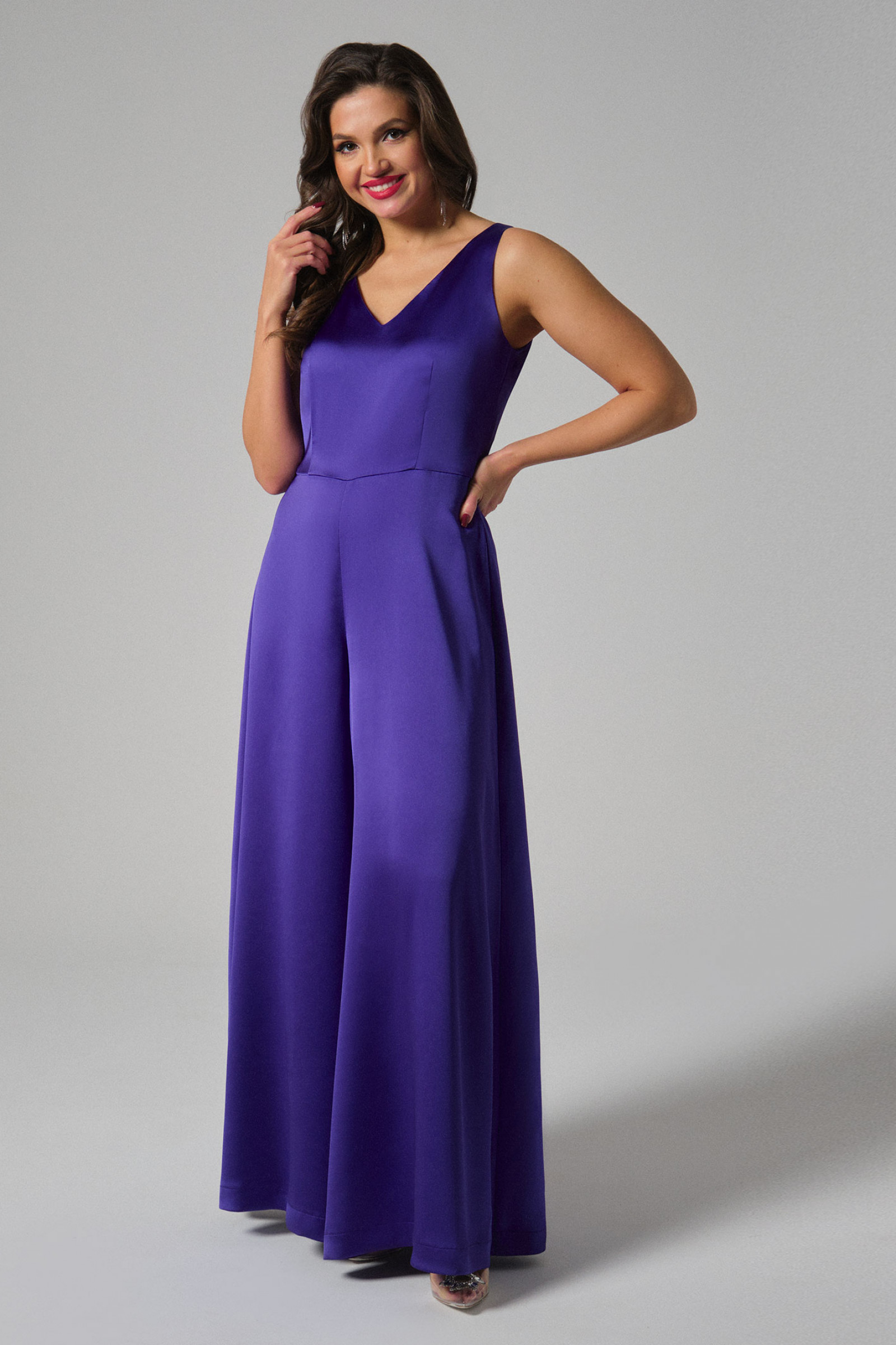 Комбинезон нарядный из костюмной ткани с нарядным блеском модного кроя. Комбинезон без рукавов. Отрезной по линии талии. Брюки расширенные к низу. По спинке застежка на одну потайную пуговицу. Разрез, переходящий в застёжку на потайную молнию. В этом наряде вы будете красивы и грациозны! Наряд с максимальным комфортом.