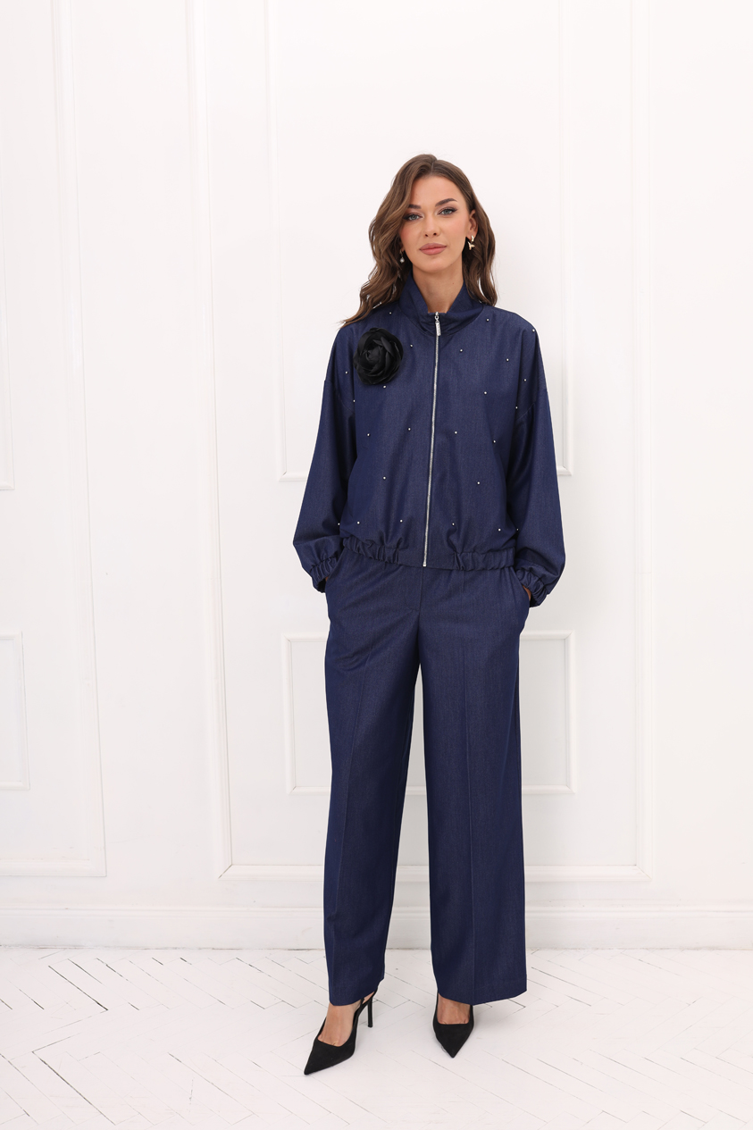 КОМПЛЕКТ 1196 (БОМБЕР+БРЮКИ) (42,44,46,48,50) ЦВЕТОК 4900 1000 "ПЭ 100% ВИСКОЗА 23%