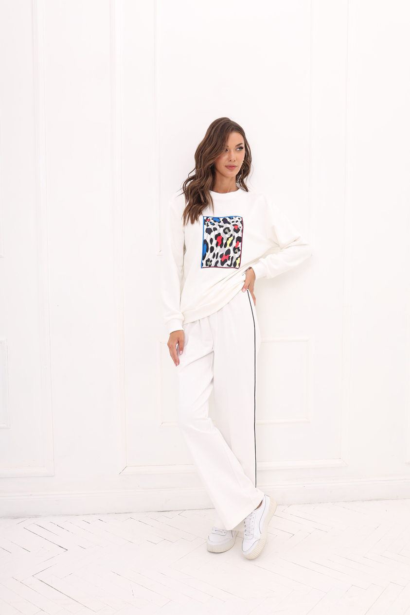 КОМПЛЕКТ 1408 (джемпер+брюки) (42,44,46,48,50) 4800 ХЛОПОК 80% ВИСКОЗА 20% БЕЛЫЙ