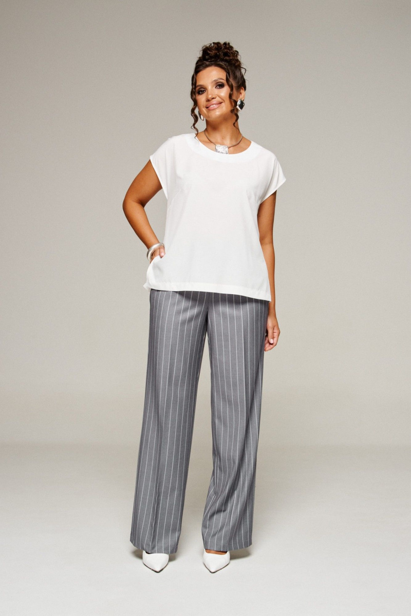 Блузка полуприлегающего силуэта. Горловина округлой формы. В боковых швах снизу разрезы.