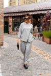 Длина жакета (по среднему шву спинки) – 66-66,5см. Длина рукава (жакет) – 62см. Длина брюк (по боковому шву) – 104см.