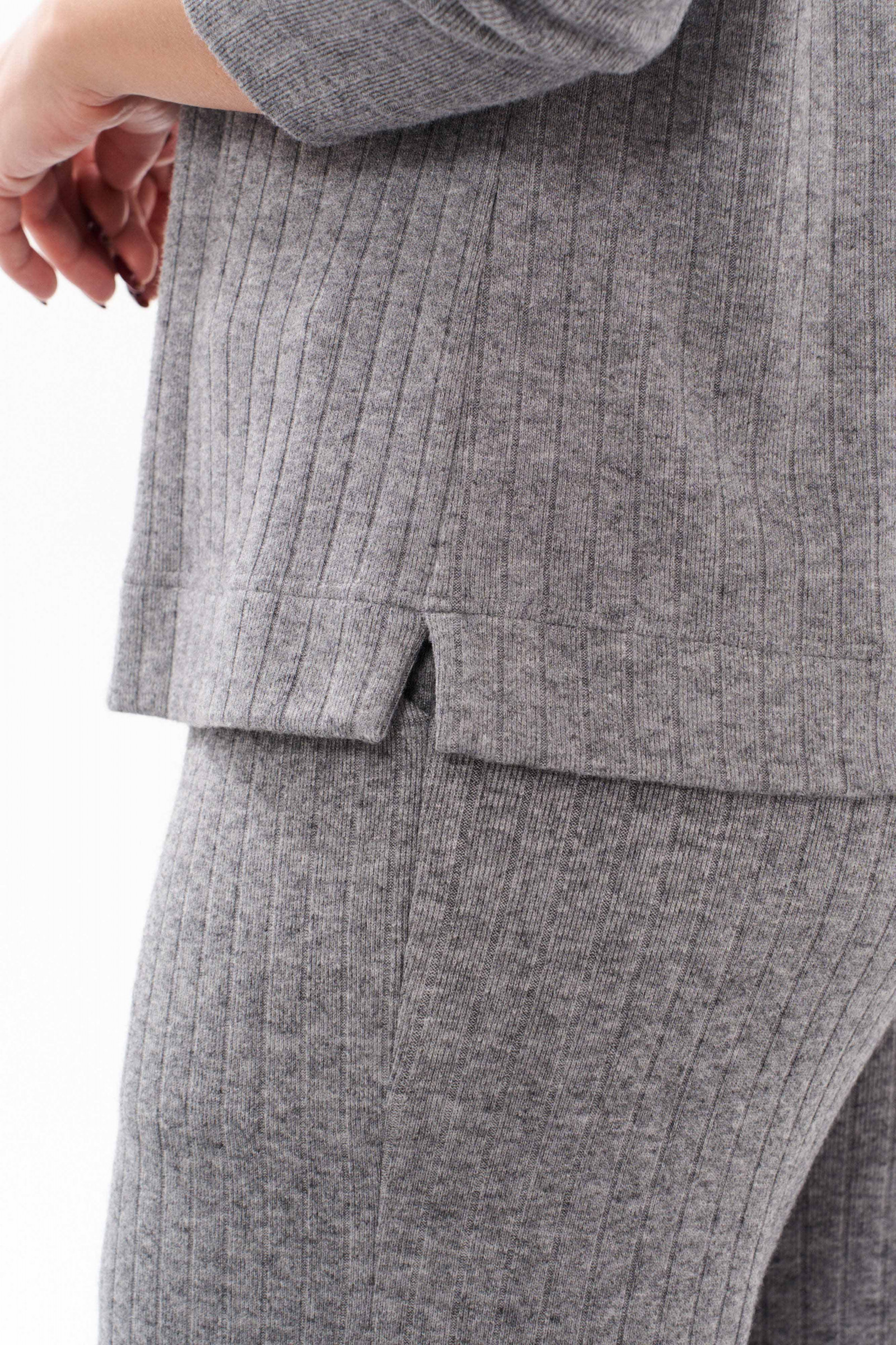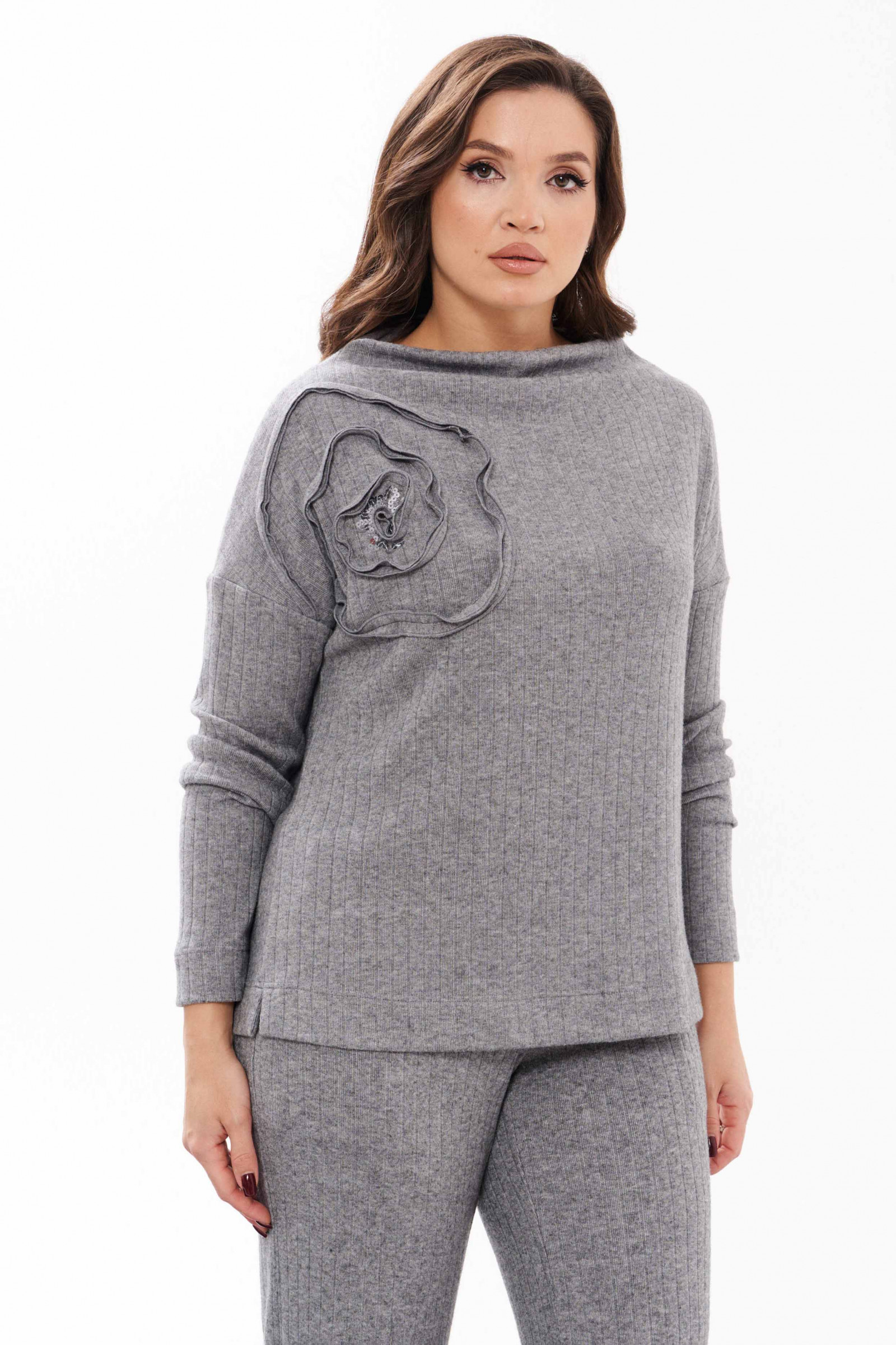 Комплект женский из поливискозного трикотажного плотна для повседневной носки. Комплект состоит из джемпера и брюк. Джемпер прямого силуэта. По переду низ изделия идет по косой. Спинка по низу изделия прямая. Горловина обработана воротником-стойкой. Линия плеча спущенная. Рукава втачные, длинные. Брюки классической длины прямые с посадкой на талии. Верхний срез брюк обработан притачным поясом на резинке. Стильный и красивый комплект осчастливит вас своим изящным видом.