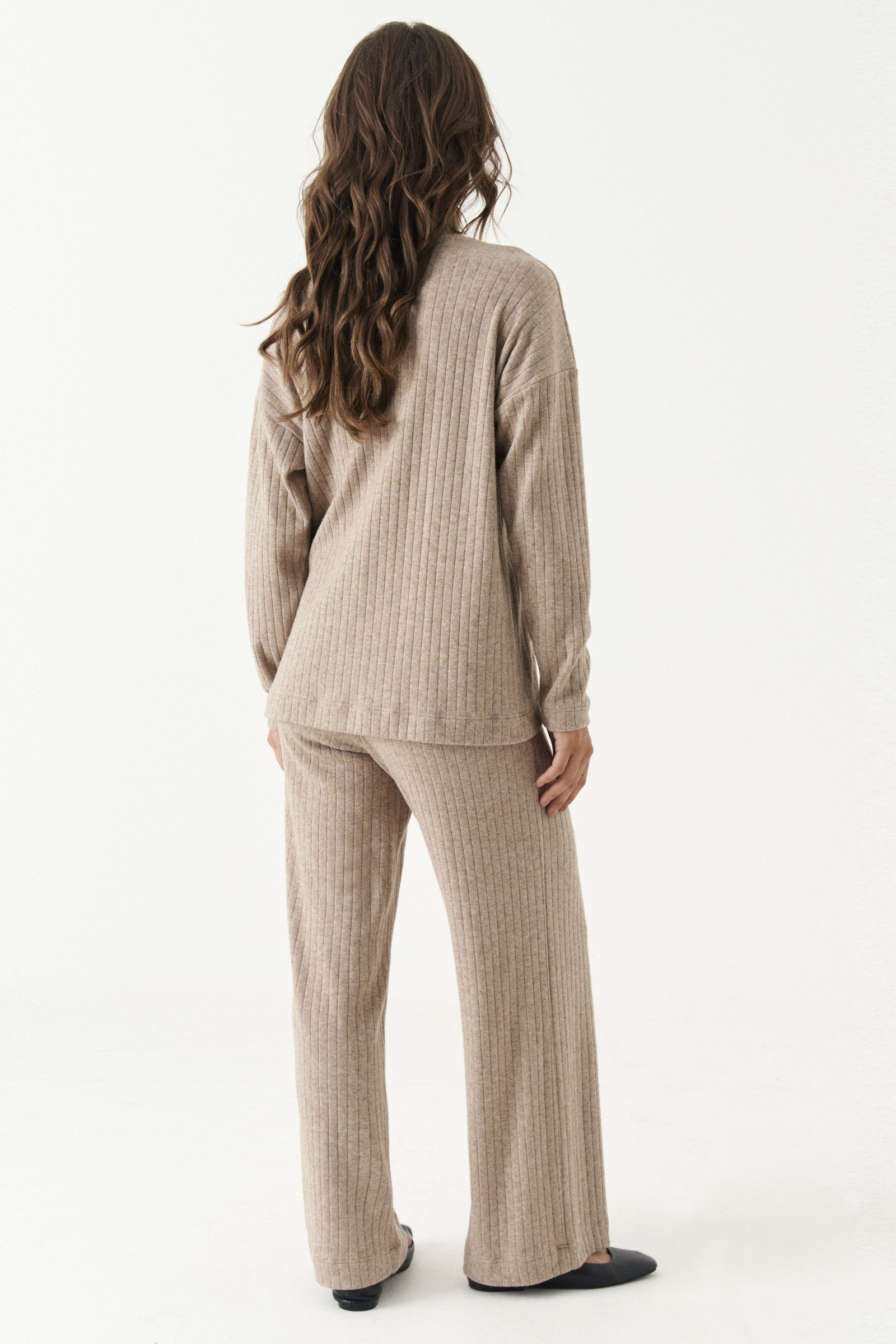 46 Джемпер: Длина изделия - 64см, Длина рукава - 45см, Ширина плеча - 23см, Ширина по груди - 53см, Ширина по низу - 53см, Ширина рукава - 19.2см; Брюки: Высота посадки - 28.5см, Длина брюк с поясом - 107см, Длина по шаговому шву - 79см, Ширина брючин сверху - 59см, Обхват брюк по низу - 53см, Ширина по бедрам - 49см, Ширина по талии - 35см;