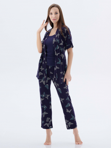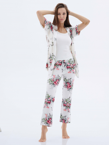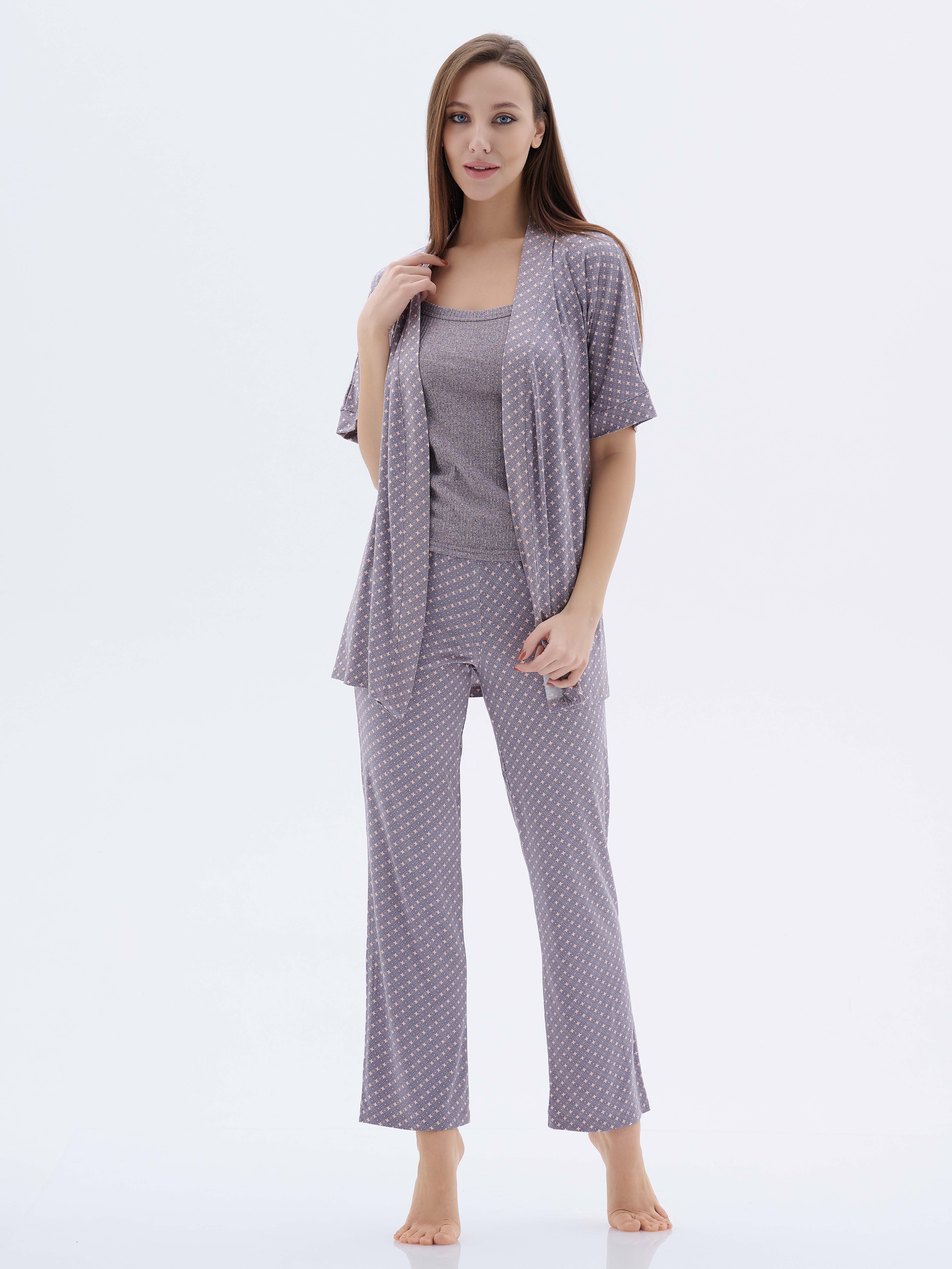 Комплект с халатом "МИШЕЛЬ": брюки, топ, халат (серый №3)
