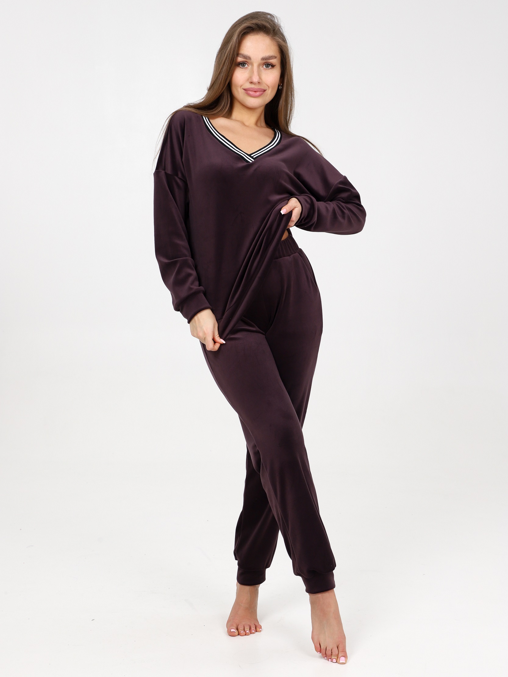 Домашний костюм из велюра – это идеальный вариант для тех, кто ищет комфорт и стиль в одежде. Стильный костюм с брюками очень удобный в носке и совершенно простой в уходе. Ткань легко стирается и гладится.