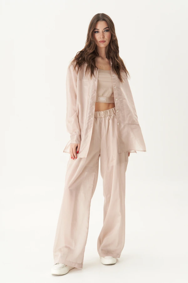 рубашка и брюки - тенсель 90%, пэ 10% топ - хлопок 96%, спандекс 4%. бежевый