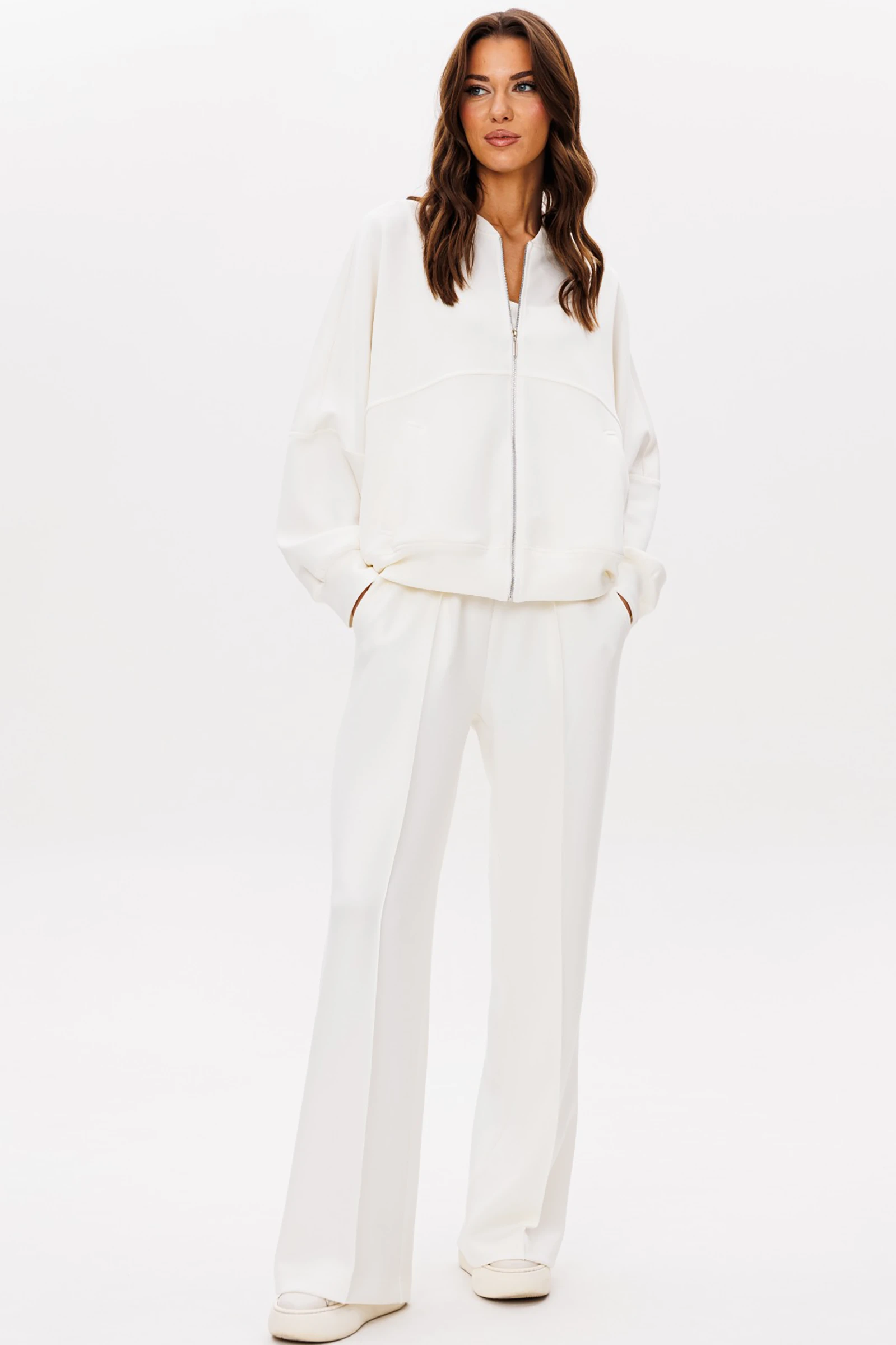 Спортивный костюм сегодня - это не только одежда для спорта. гардероба любой современной девушки - он является ещё и элементом стиля.Спортивный костюм в ярко-красном цвете будет уместен везде и всегда, несмотря на любые веяния моды.Костюм состоит из свободной лёгкой куртки на разъёмной тесьме-молнии и прямых брюк.Цельнокроеный покрой актуален, он идеально обеспечивает свободу движений. Воротник в виде мягкой стойки, по переду спинки и рукавам - акцентные рельефы, подчёркнутые отделочными строчками. Для удобства использования - прорезные карманы с листочками.Низ куртки и рукавов - на притачных манжетах.Брюки свободные, с вертикальными защипами-стрелками на передних половинках визуально удлиняют и стройнят. Предусмотрены боковые карманы. Пояс брюк с эластичной лентой и регулировкой на шнур спереди.Фурнитура - металлическая тесьма, эмблема на спинке, текстильный шнур.Длина изделия по спинке-около 58 см.Длина рукава от шва притачивания воротника с плечом - около 72 см.Длина брюк около 106 см.