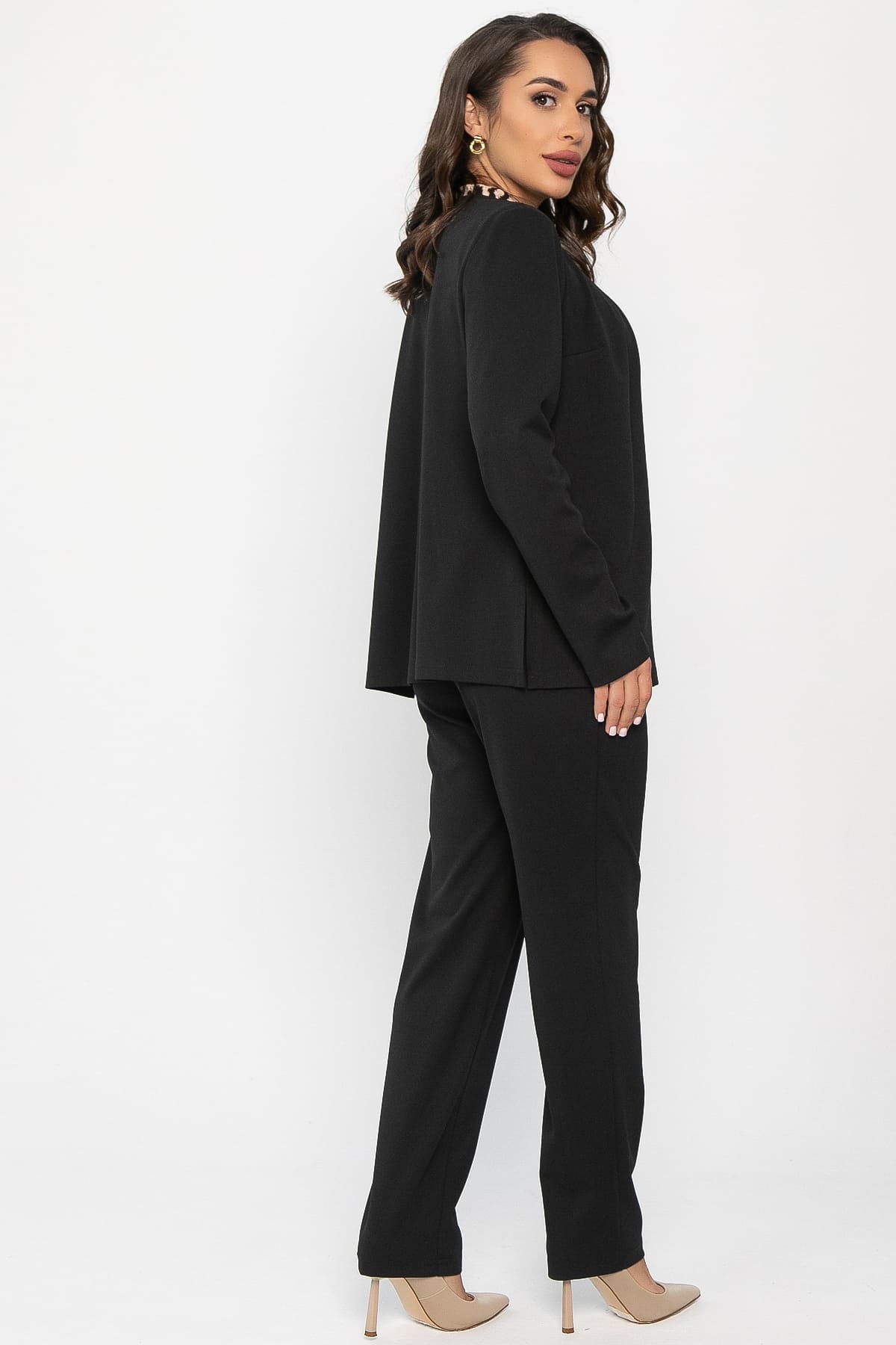 Женский брючный костюм в базовом черном цвете — это идеальное сочетание стиля и удобства. Он состоит из классических прямых брюк и элегантного жакета. Подходит как для офиса, так и для учебы. Это отличное решение для тех, кто стремится к практичности и стилю в одном!