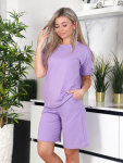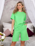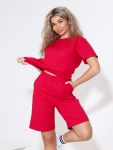 Костюм женский с шортами-бермудами и футболкой. Изготовлен из качественного футера 2-х нитка. Ткань дышащая, приятная к телу, простая в уходе и после множества стирок не потеряет свой первоначальный вид и цвет.