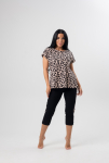 Футболка oversize с круглым вырезом горловины. Рукав короткий, со спущенным плечом. На рукавах выполнены отвороты.