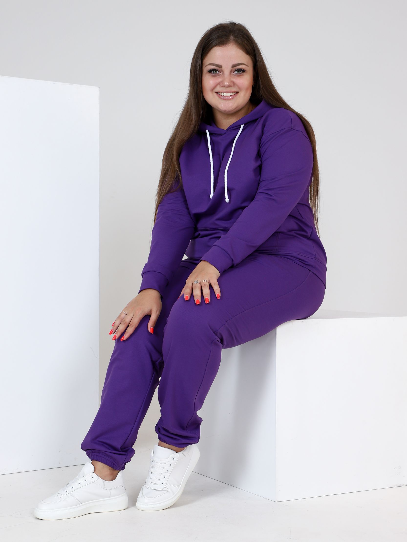 Женский спортивный костюм больших размеров из хлопкового трикотажа. Ткань очень приятная к телу, мягкая и гладкая. Натуральный хлопок с добавлением безопасных синтетических нитей прекрасно сохраняет форму, неприхотлив в уходе.