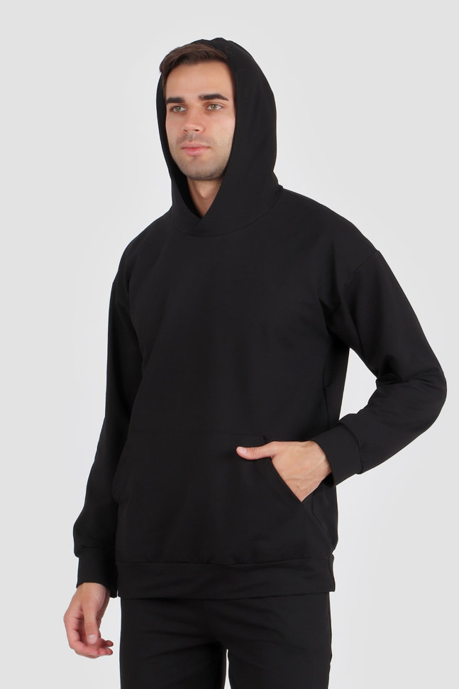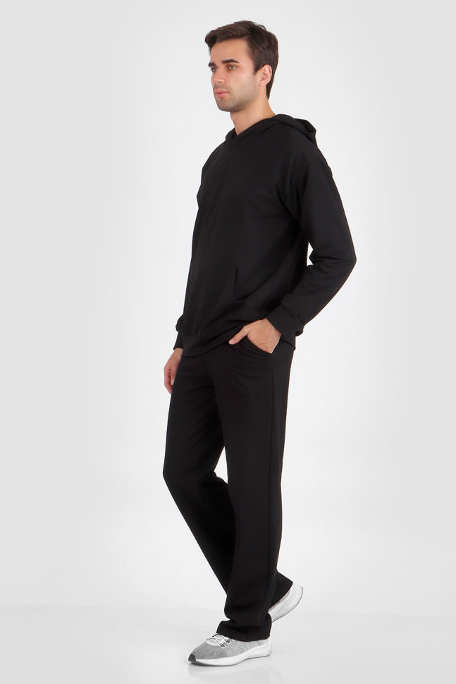 Спортивный костюм мужской из футера с лайкрой, цвет "черный" рост 176-182см.Толстовка с капюшоном, на полочке карман "кенгуру", рукава втачные на манжете. Брюки с боковыми карманами , низ без манжет. Благодаря хорошему крою , особенности ткани этого костюма Вы будете чувствовать себя комфортно во время занятия спортом, на отдыхе и прогулке. Состав: Футер 2-х нитка однотонный(75%хлопок,20% ПЭ, 5% лайкра).