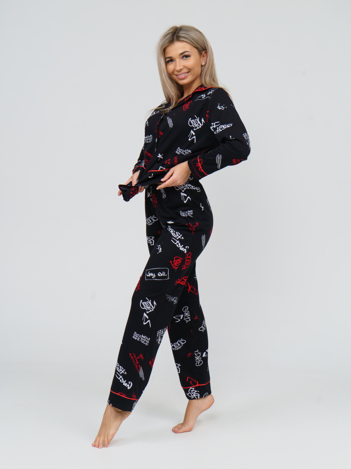 Женская хлопковая пижама в костюмном стиле бренда НСД-стиль. Комплект выполнен из 100% хлопка. Рубашка на пуговицах, воротник шалевого типа, на рубашке два накладных кармана, кант на манжетах, застежка пуговицы. Брюки прямого кроя, пояс - широкая резинка, кант внизу. Удобная модель на каждый день и для особых поводов, подойдет для отдыха, для дома, сна, в роддом, кормящим мамам и на выписку. Женская пижама из хлопка станет отличным подарком на праздники, подруге, маме, бабушке, сестре, жене. Ее можно носить как домашний костюмчик.