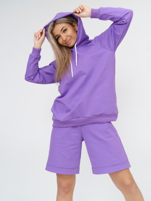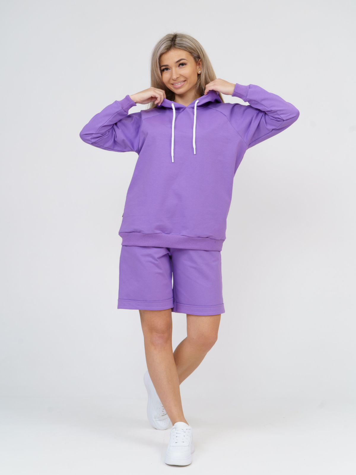 Женский спортивный костюм в стиле оверсайз. Костюм сидит чуть свободно, если любите оверсайз - советуем взять на размер больше. Стильный, модный и комфортный костюм состоит из толстовки и шорт выполненных из высококачественного футера 2х-нитка. Шорты с широкой резинкой и карманами в боковых швах могут прекрасно сочетаться с лонгливами, топами и свитшотами.