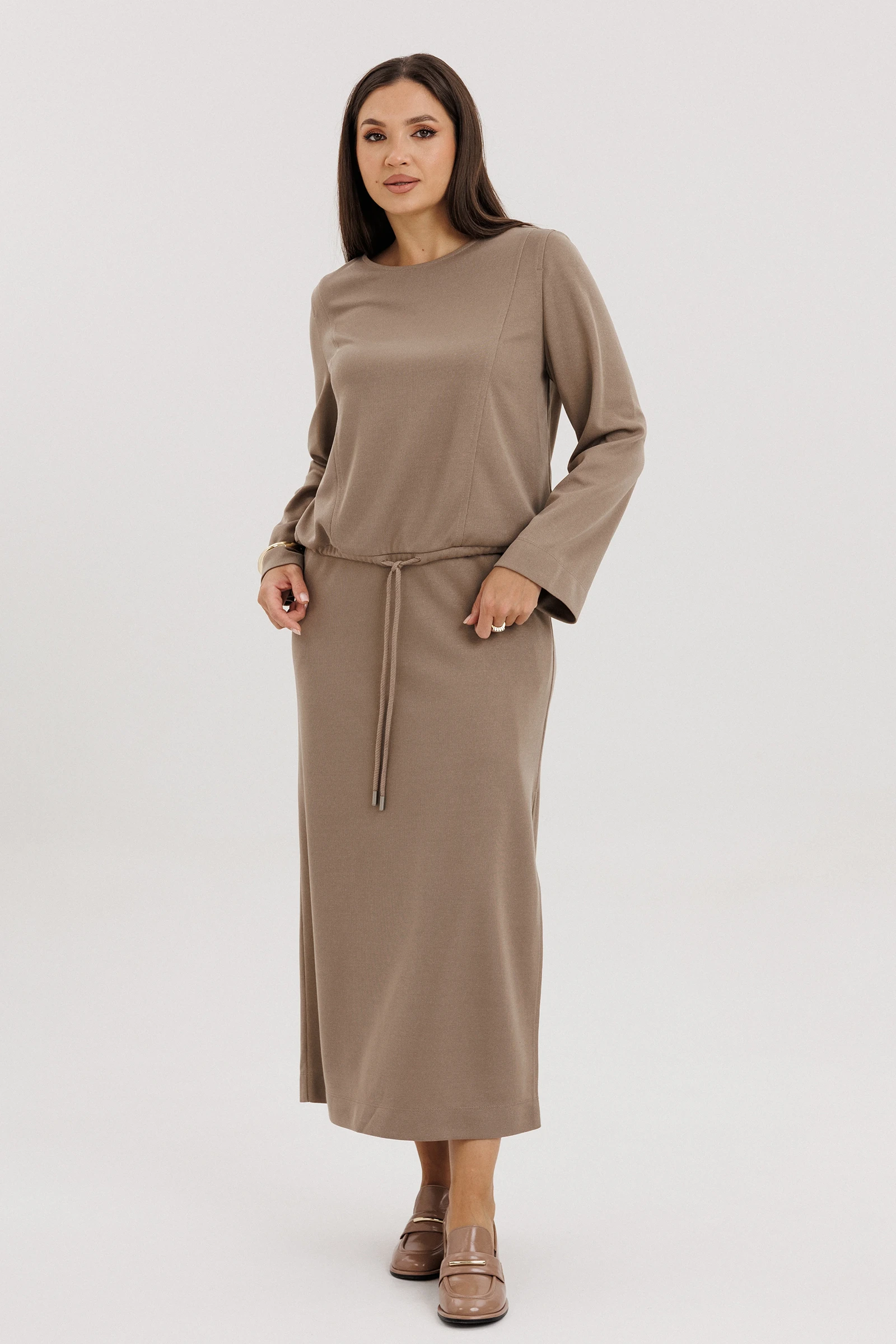 Трикотажный костюм по праву занимает лидирующие позиции на модных осенних улицах и, конечно же, у нас в гардеробе. Он практичен и удобен. Свободный джемпер упрямлённого силуэта, втачного покроя с регулирующей кулисой по низу. Полочка с боковым вертикальным рельефом. Спинка с вертикальным рельефом, средним швом и застёжкой на отелочную молнию. Рукав с цельнокроеной манжетой. Юбка макси, на притачном эластичном поясе, с наклонными боковыми карманами и эффектным разрезом сбоку.