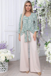 Костюм из лёгкой ткани идеально подойдёт для летнего расслабленного образа. Свободный крой не сковывает движений и дарит комфорт. Рукав укороченный со спущенным плечевым швом.В комплект входит пояс из основной ткани, который позволит подчеркнуть преимущества фигуры.