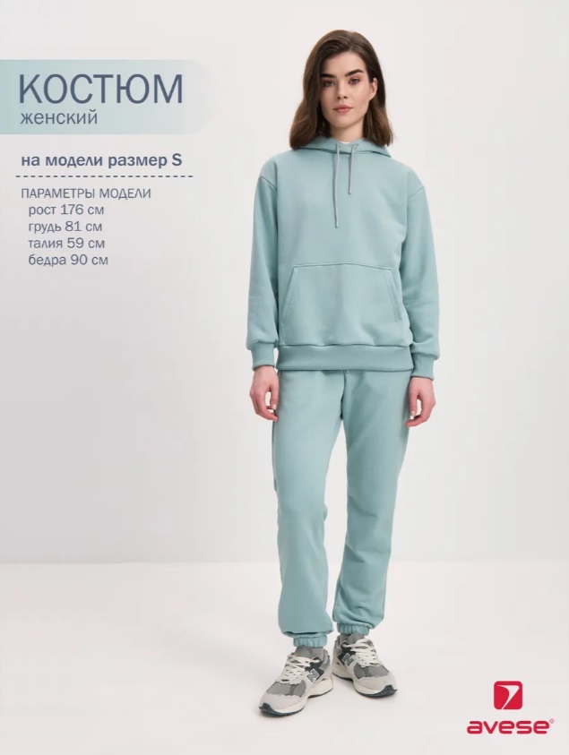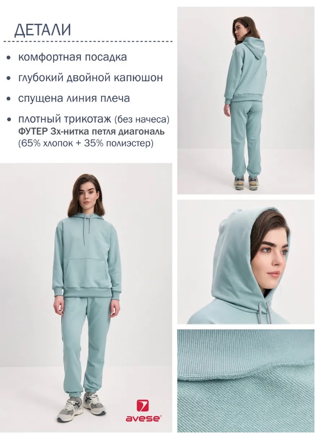 Костюм женский из хлопкового футера 3-х нитка петля диагональ: худи + джоггеры.