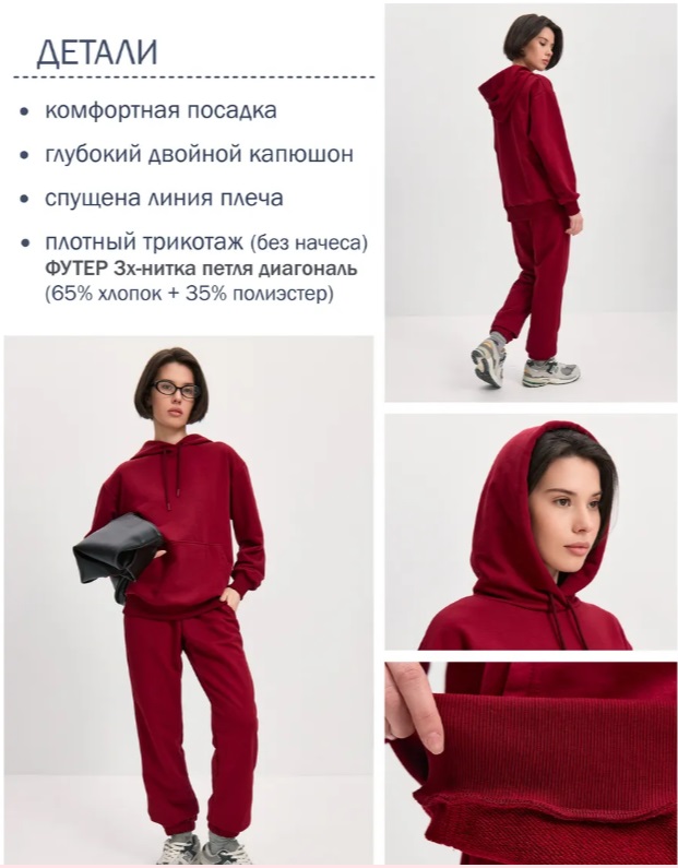 Костюм женский из хлопкового футера 3-х нитка петля диагональ: худи + джоггеры.