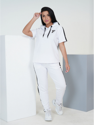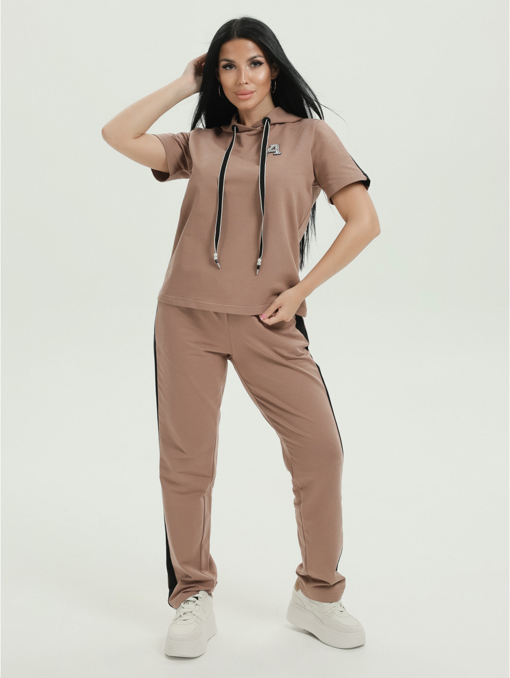 Рукав короткий. Дополнением к образу служат лампасы и стильная наклейка со стразами.