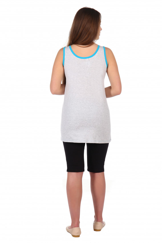 Описание: Майка приталенный силуэт, аппликация «шелкография», без рукава, длина до середины бедра, легинсы до колена.