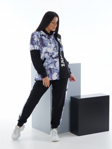 Представляем Вам наш костюм СТИХИЯ, состоящий из кофты с длинным рукавом и брюк карманами. Кофта с капюшоном, край которого стягивает декоративный шнурок с оригинальным наконечником. Длинный рукав. Дополнением к образу служит стильная печать. Отделкой служат лампасы на брюках.
