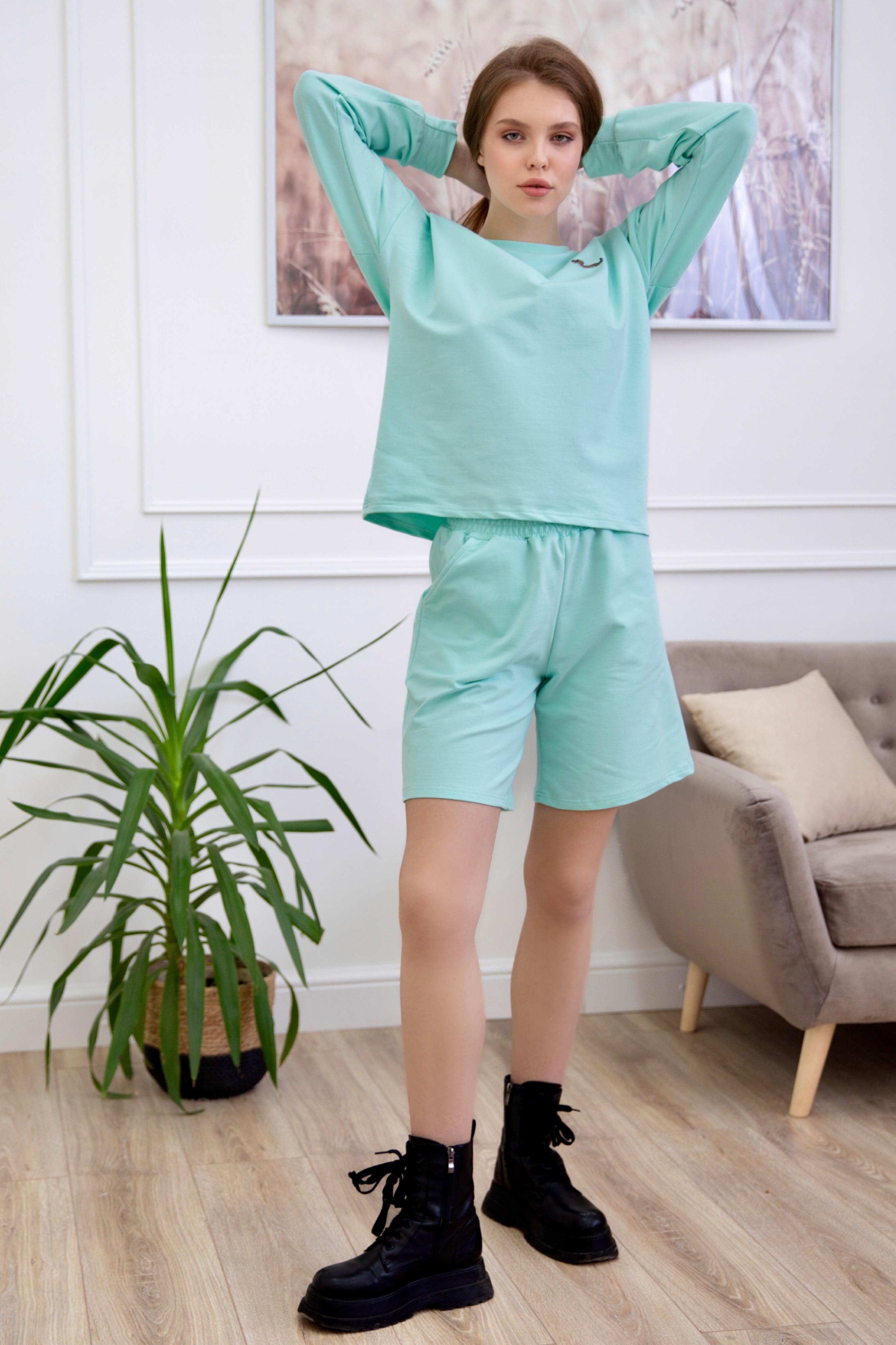 Модный женский костюм Таша состоит из свободной футболки и шорт из футера 2х ниточного. Женская футболка и шорты имеют прямой свободный силует, подходящий девушкам, женщинам и подросткам. Идеально садится на высоких и маленьких ростом девушек. Домашний костюм с шортами не захочется снимать, настолько он комфортный. Классный вариант для прогулок, в отпуск или поездок на море.