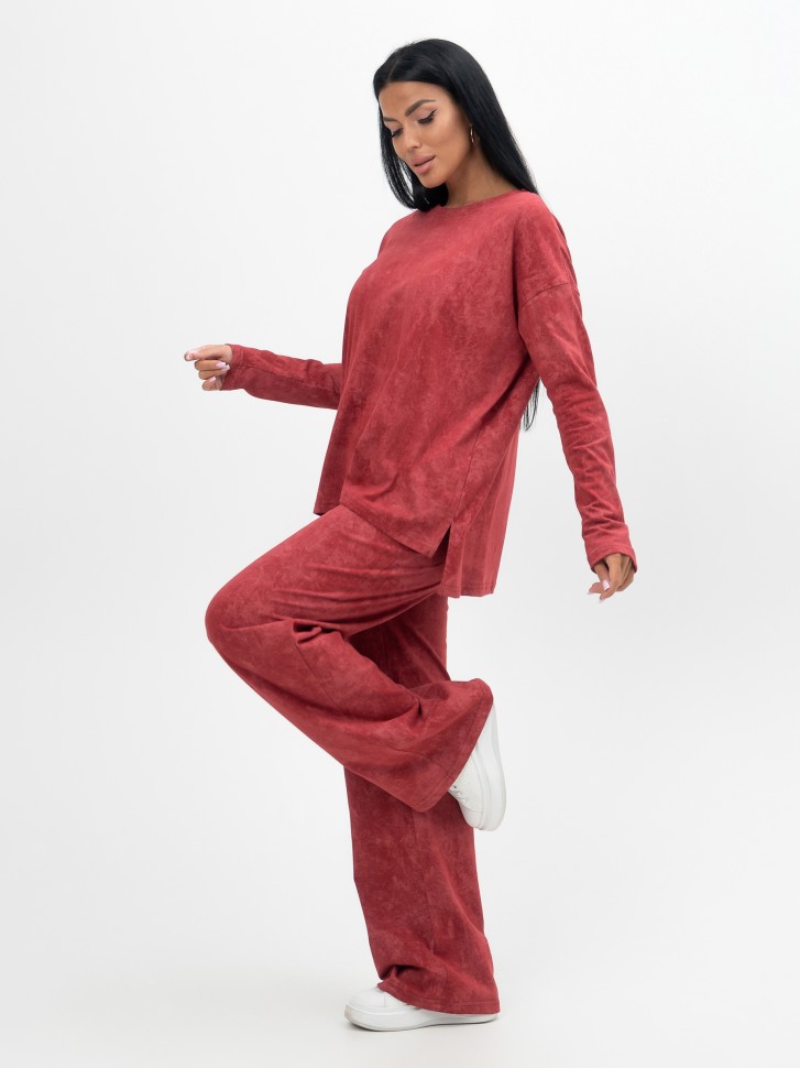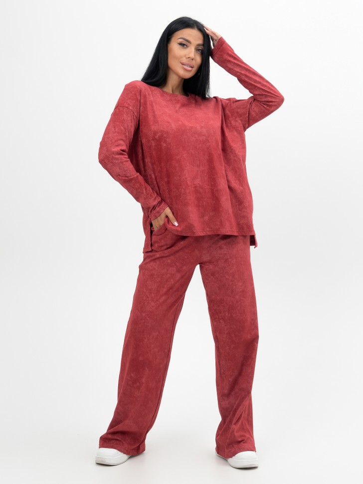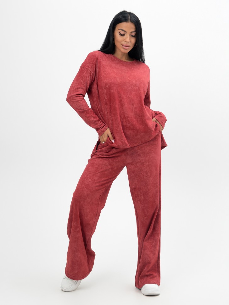Костюм в стиле спорт-шик: Свитшот свободного кроя с узким рукавом, Прямые брюки с карманами.