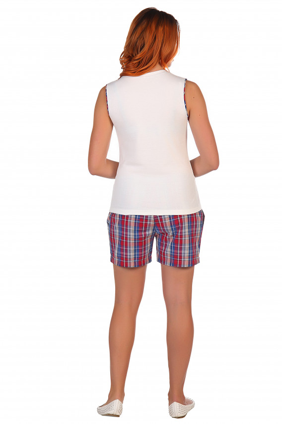 Описание: Кулирное полотно- фуфайка, хлопчатобумажное сорочечное полотно (мягкая, гигроскопичная и гипоаллергенная) - шорты. Фуфайка свободного кроя, без рукава длина до середины бедра, декорирована печатью «шелкография». Шорты свободного кроя, верх на резинке, в боковых швах карманы.